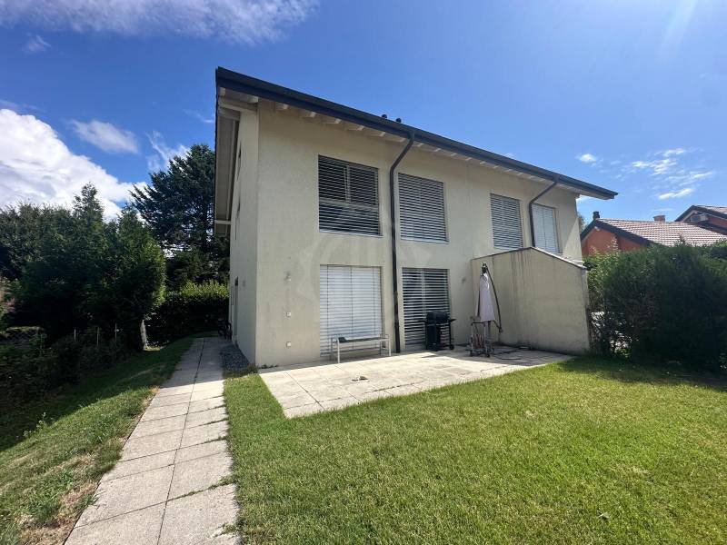 - Ensoleillé- Matériaux de qualité- Pompe à chaleur- Chauffage au sol- Bail à durée indéterminéeAu c?ur du charmant village de Chavannes-de-Bogis, cette élégante villa jumelle, édifiée en 2012 avec des matériaux de qualité, bénéficie d?un excellent état d?entretien.La maison se situe dans un quartier résidentiel paisible, au centre du village, à proximité immédiate des écoles (l?école primaire se trouve au bout du chemin), des commodités et de l?école internationale.D?une surface d?environ 260 m², la maison totalisant 6 pièces se répartit comme suit :Rez-de-chaussée :Un hall d'entrée, WC visiteurs, une cuisine moderne entièrement équipée et aménagée, avec sortie sur la terrasse et jardin, un salon/salle à manger avec poêle à bois, sortie sur jardin.1er étage :Trois chambres à coucher dont une avec dressing, une salle de bains/WC/double lavabo.Combles :Une chambre indépendante avec salle d'eau avec douche/WC/lavabo.Sous-sol :Une grande salle de jeux, une cave, une buanderie-chaufferie, et sortie vers l'extérieur.Cette villa séduit par son emplacement privilégié, son agencement fonctionnel et la qualité de ses prestations, offrant un cadre de vie idéal pour une famille.Deux places de parc extérieurs.Loyer net mensuel CHF 4'203.-. + charges individuelles.Système de chauffage : pompe à chaleur.Disponibilité : 1er décembre 2025En cas d?intérêt pour une visite, notre service de locations résidentielles est à votre disposition : location-vd@spg.ch - 058 810 37 43Postuler en ligne:https://dec.spg.ch/DEC/Client/newapplication?obj=1EA844D5-7540-4227-B03A-2867B9DCCFFB_221381