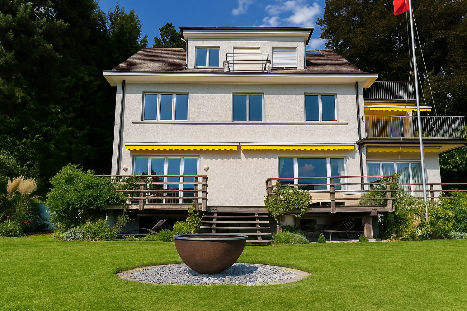 This charming home, built approx. 1800, is equipped to a high standard and offers beautiful views of Lake Zurich. On offer are a living room, a separate dining room, a gourmet kitchen with additional dining space, 4 bedrooms, one with a fireplace and en-suite bathroom, various possibilities for office space, 2 further bathrooms and a separate guest toilet and a gallery at the top of the house. Furthermore, the house has its own sauna, enough storage space and the cute little ?Schnapshaus? along side a special vine covered, trellised, outdoor bar-b-que and patio entertainment area, behind the house, which is for sole usage to the renters.The house has undergone extensive renovations this summer, with a new kitchen and bathroom, new energy efficient heating system, new wood flooring and fresh paint throughout and much more. A tandem parking spot in the underground car park with electric charging capabilities is included in the rent, but no operating costs.The lake access opposite the house provides a quick opportunity for an afternoon paddle or swim. The local badi is a short walk for further recreational fun. Here you live in a very idyllic lakeside tax-friendly community not far from Zurich city center. The train station and bus stop are only a few minutes walk away. Have we piqued your interest? Then please get in touch with us by e-mail. We will be happy to answer any questions and schedule a viewing. -------Dieses charmante Haus, erbaut ca. 1800, ist hochwertig ausgestattet und bietet einen wunderschönen Blick auf den Zürichsee. Geboten werden ein Wohnzimmer, ein separates Esszimmer, eine Gourmetküche mit zusätzlichem Essplatz, 4 Schlafzimmer, eines davon mit Kamin und Bad en Suite, diverse Möglichkeiten für Büroräume, 2 weitere Bäder und ein separates Gäste-WC sowie eine Galerie im Dachgeschoss. Darüber hinaus verfügt das Haus über eine eigene Sauna, ausreichend Stauraum und das niedliche kleine ?Schnapshaus? sowie einen speziellen, mit Weinreben überdachten und mit Spalieren versehenen Grill- und Terrassenbereich hinter dem Haus, der den Mietern zur alleinigen Nutzung zur Verfügung steht.Das Haus wurde in diesem Sommer umfassend renoviert, mit einer neuen Küche und einem neuen Bad, einer neuen energieeffizienten Heizungsanlage, neuen Holzböden und frischer Farbe im gesamten Haus und vieles mehr. Ein Tandemparkplatz in der Tiefgarage mit elektrischen Lademöglichkeiten ist im Mietpreis enthalten, jedoch keinerlei Nebenkosten.Der Seezugang gegenüber dem Haus bietet eine schnelle Gelegenheit für einen nachmittäglichen Paddel- oder Badeausflug. Für weiteres Freizeitvergnügen ist die örtliche Badi nur einen kurzen Spaziergang entfernt. Hier wohnen Sie in einer sehr idyllischen, steuergünstigen Seegemeinde unweit des Zürcher Stadtzentrums. Der Bahnhof und die Bushaltestelle sind nur wenige Gehminuten entfernt.Haben wir Ihr Interesse geweckt? Dann setzen Sie sich bitte per E-Mail mit uns in Verbindung. Wir beantworten Ihnen gerne alle Fragen und vereinbaren einen Besichtigungstermin.