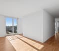 • Sliding glass doors leading to balcony, large windows, city view, beige flooring