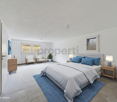 • Spacious attic bedroom with exposed wooden beams, hardwood flooring, and a small balcony or terrace visible through the doorway.