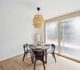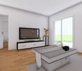 • Spacious living room with large windows, hardwood flooring, and access to a balcony or terrace. The room has a clean, modern design with neutral colors and plenty of natural light.