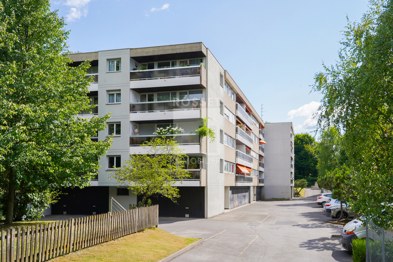 Bienvenue sur notre portail immobilier! Vous recherchez un appartement en hauteur orienté plein sud et sans vis-à-vis ? Ne cherchez plus, cet appartement de 5 pièces à Genève est fait pour vous. Situé dans un parc verdoyant et calme, offrant une vue imprenable sur la nature et le Salève, vous pourrez profiter d'un grand balcon couvert (loggia de 24 m²) pour vos moments de détente. Dans un quartier résidentiel de standing, proche des Organisations Internationales et de toutes commodités, cet appartement vous séduira par ses grandes baies vitrées et son futur court de tennis partagé. Cette offre de BETTERHOMES se caractérise par les avantages suivants: - situation exceptionnelle dans un parc verdoyant- quartier résidentiel calme- vue sur la nature et le Salève- très grand balcon couvert- proche toutes commodités- grandes baies vitrées- court de tennis bientôt disponibles- sous la casatax- etc., etc., etc. ...Intéressé? Contactez-nous pour une visite gratuite!Rien qui correspond? Vous trouverez plus de 2'100 autres objets sur: www.betterhomes.ch - Le spécialiste suisse des transactions immobilières.Vous avez un bien immobilier à commercialiser?Profitez de notre savoir-faire: https://www.betterhomes.ch/fr/profiterVous souhaitez connaître la valeur de votre bien immobilier?Découvrez sa valeur dès maintenant grâce à notre estimation gratuite, immédiate et sans engagement!https://www.betterhomes.ch/fr/knowledge/estimationPlus détailsSituation: au milieu d'un parc, au calme face à l'ambassade du Quatar Etat du bâtiment: bon - toiture et rez-de-chaussée entièrement rénovés en 2022Salles de bain: 2 (1 x douche-italienne / lavabo / WC, 1 x buanderie) Transport publics: tram / bus, 500 mEcole: collège Rousseau, 100 mCommerces: Migros / Coop, 900 m