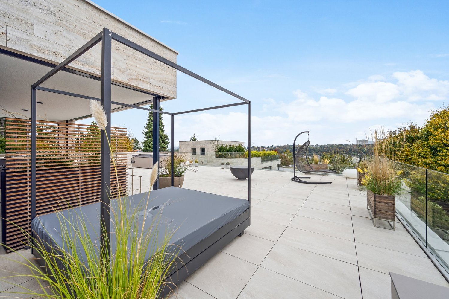 Willkommen in Ihrer neuen Luxusresidenz! Diese atemberaubende 8.5-Zimmer Attika-Maisonette-Wohnung in Binningen definiert exklusives Wohnen neu. Auf der grosszügigen Wohnfläche erstreckt sich eine Oase des Komforts, ergänzt durch zwei vielseitig nutzbare disponible Räume im Untergeschoss. Das absolute Highlight ist die beeindruckende Dachterrasse von etwa 140 m², die Ihnen eine spektakuläre Panoramaaussicht über Binningen und Basel bietet ? ein Ort, der zum Entspannen und Geniessen einlädt. Ein weiterer grosszügiger Balkon fügt sich perfekt in das stilvolle Wohnkonzept ein und schenkt Ihnen zusätzlichen Raum unter freiem Himmel.Zudem besticht die Liegenschaft durch folgende Eckdaten:- Designerküche mit hochwertigen Miele-Geräten, Teppanyaki-Grill und Weinkühlschrank- schallgedämmte High-End Home-Cinema Lounge mit Audioanlage- Luxussauna und Whirlpool- Pergola mit Aussenküche- Smart-Home-System für Licht, Storen und Heizung- Skyframe Fenster mit elektrischen Antrieben und Mückennetzen- Free-Cooling-Technologie- Zentralstaubsaugeranlage- Akustik Decken und schalldichte Türen- Kellerabteil und private Waschküche- 4 Einstellhallenplätze mit zwei Ladestationen- Naturstein Travertin FassadeFür weitere Informationen oder einen Besichtigungstermin stehen wir Ihnen gerne jederzeit zur Verfügung. Wir freuen uns über Ihre Kontaktaufnahme.