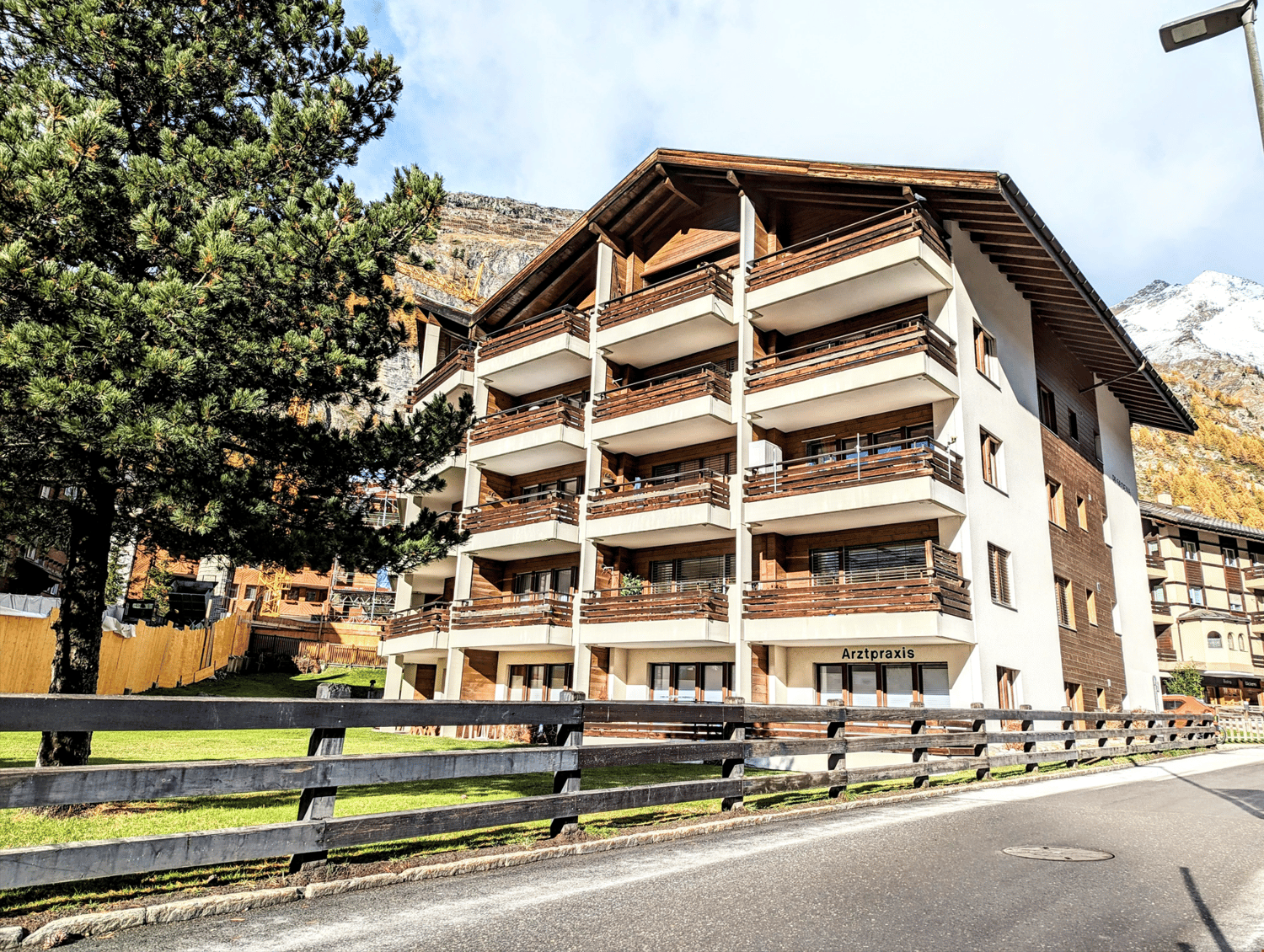 Willkommen in Ihrem neuen Domizil, wo tatsächlich alles perfekt harmoniert! Highlight :-) Lage, Lage, Lage! - Matterhornblick - Exklusiv bei Horu ImmobilienWillkommen in Ihrem persönlichen Alpenparadies, wo Träume wahr werden! Diese traumhafte, vollständig sanierte Wohnung in Zermatt lädt Sie ein, das Beste aus Ihrem Leben in den majestätischen Schweizer Alpen zu machen. Ebenfalls wurde von einigen Jahren das Haus komplett saniert.Nur 50 Schritte trennen Sie vom Bahnhof und ebenfalls so nah zur Gornergratbahn - hier sind Sie umgeben von unvergesslichen Abenteuern und einer atemberaubenden Natur.Die Lage dieser Wohnung ist einfach unvergleichlich. Stellen Sie sich vor, jeden Morgen von Ihrem Balkon aus den Blick auf das majestätische Matterhorn zu genießen, während der höchste Berg der Schweiz, der Dom, Ihnen aus Ihren Schlafzimmern entgegenblickt. Diese Ausblicke werden zu einem täglichen Ritual, das Sie mit einem tiefen Gefühl von Glück und Zufriedenheit erfüllt.Im Inneren der Wohnung erwartet Sie eine wohl durchdachte Raumaufteilung. Die zwei liebevoll gestalteten Schlafzimmer bieten Ihnen den Rückzugsort, den Sie sich schon immer gewünscht haben. Eines davon verfügt über ein eigenes Bad - der perfekte Ort, um nach einem aufregenden Tag in den Bergen die Seele baumeln zu lassen. Eine charmante Gästetoilette mit Dusche sorgt dafür, dass auch Ihre Gäste in einem einladenden Ambiente empfangen werden.Die offene, moderne Küche ist nicht nur ein funktionaler Raum, sondern ein Ort, an dem Sie gemeinsam mit Freunden und Familie leckere Köstlichkeiten zaubern können. Sie verbindet stilvolles Design mit gemütlicher Atmosphäre. Der super gemütliche Wohnbereich, ausgestattet mit einem warmen Holzboden und einzigartigen Designelementen, strahlt eine einladende Aura aus, während die beeindruckende offene Holzdecke eine harmonische Note hinzufügt und einen Hauch von traditionellem Chalet-Charme versprüht.Besonders praktisch ist der Fahrstuhl, der Ihnen den Zugang zu Ihrem neuen Zuhause erleichtert. Im Erdgeschoss befindet sich der Coop-Supermarkt, sodass Sie bequem mit dem Fahrstuhl hinunterfahren können, um Ihre alltäglichen Einkäufe zu erledigen. So bleibt Ihnen mehr Zeit, um das Leben in vollen Zügen zu genießen und die Schönheit von Zermatt zu erkunden.Diese Wohnung ist mehr als nur ein Ort zum Wohnen, sie ist der Schlüssel zu einem Leben voller Erinnerungen und Erlebnisse in einer der malerischsten Regionen der Welt. Der Morgen beginnt mit Lichtstrahlen, die durch Ihre Fenster tanzen, und enden mit der zauberhaften Kulisse des schneebedeckten Matterhorns im Abendlicht.Ergreifen Sie diese einmalige Gelegenheit! Lassen Sie sich von dieser außergewöhnlichen Wohnung verzaubern und verwirklichen Sie Ihren Traum vom Leben in Zermatt. Ihr neues Zuhause wartet auf Sie, um die Geschichten Ihres Lebens zu schreiben!Kontaktieren Sie uns für eine Besichtigung und erleben Sie Ihr zukünftiges Paradies hautnah.Mit besten GrüssenIhr Horu Team