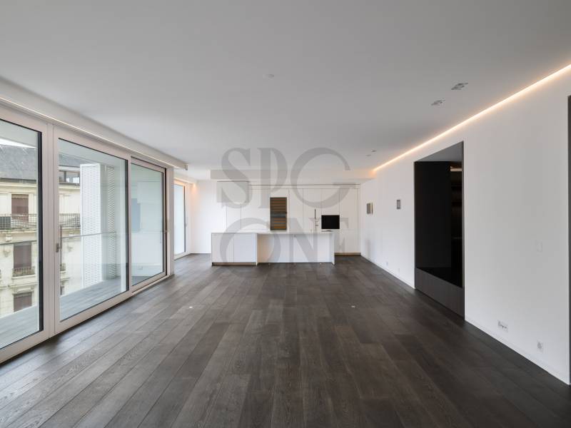 Découvrez cet appartement d'exception, situé dans l'une des résidences les plus prestigieuses de Genève. Construit en 2015, cet appartement traversant de 6 pièces, d'une superficie d'environ 2100 m² PPE, allie luxe, confort et modernité. Conçu par l'architecte renommé Piero Lissoni, il se distingue par un design épuré et contemporain, tout en offrant des prestations de très haute qualité.Idéalement situé sur la rive droite à proximité immédiate de la gare, du centre-ville et de l'aéroport, cet appartement bénéficie d'un emplacement central et privilégié. Vous apprécierez également les services haut de gamme offerts par la résidence, comprenant une conciergerie et une sécurité 24h/24, ainsi qu'un fitness privé réservé aux résidents. Un parking souterrain sécurisé, offrant un accès direct à l'appartement.À l'intérieur, cet appartement propose un agencement optimal, avec un hall d'entrée spacieux équipé d'un vestiaire intégré. La cuisine, entièrement équipée, s'ouvre sur un séjour lumineux qui donne accès à un balcon orienté Sud-Est, idéal pour profiter de la lumière naturelle. La salle à manger, également ouverte sur le séjour, crée une atmosphère conviviale et chaleureuse. Une bibliothèque et un salon TV offrent un espace de détente supplémentaire. De plus, l'appartement dispose d'une buanderie privée et d'un espace de rangement.L'appartement comprend également une suite parentale avec une salle de bain attenante, une douche, des WC et un dressing spacieux. Une chambre à coucher avec balcon et salle de bains attenante, ainsi qu'une troisième chambre avec salle de douche attenante et WC.La résidence met un accent particulier sur la domotique, permettant une gestion personnalisée de l'éclairage et du chauffage pour une expérience de vie moderne et connectée.Ce bien unique représente une opportunité rare pour ceux en quête d'un cadre de vie alliant confort, services de luxe et localisation idéale au c?ur de Genève.