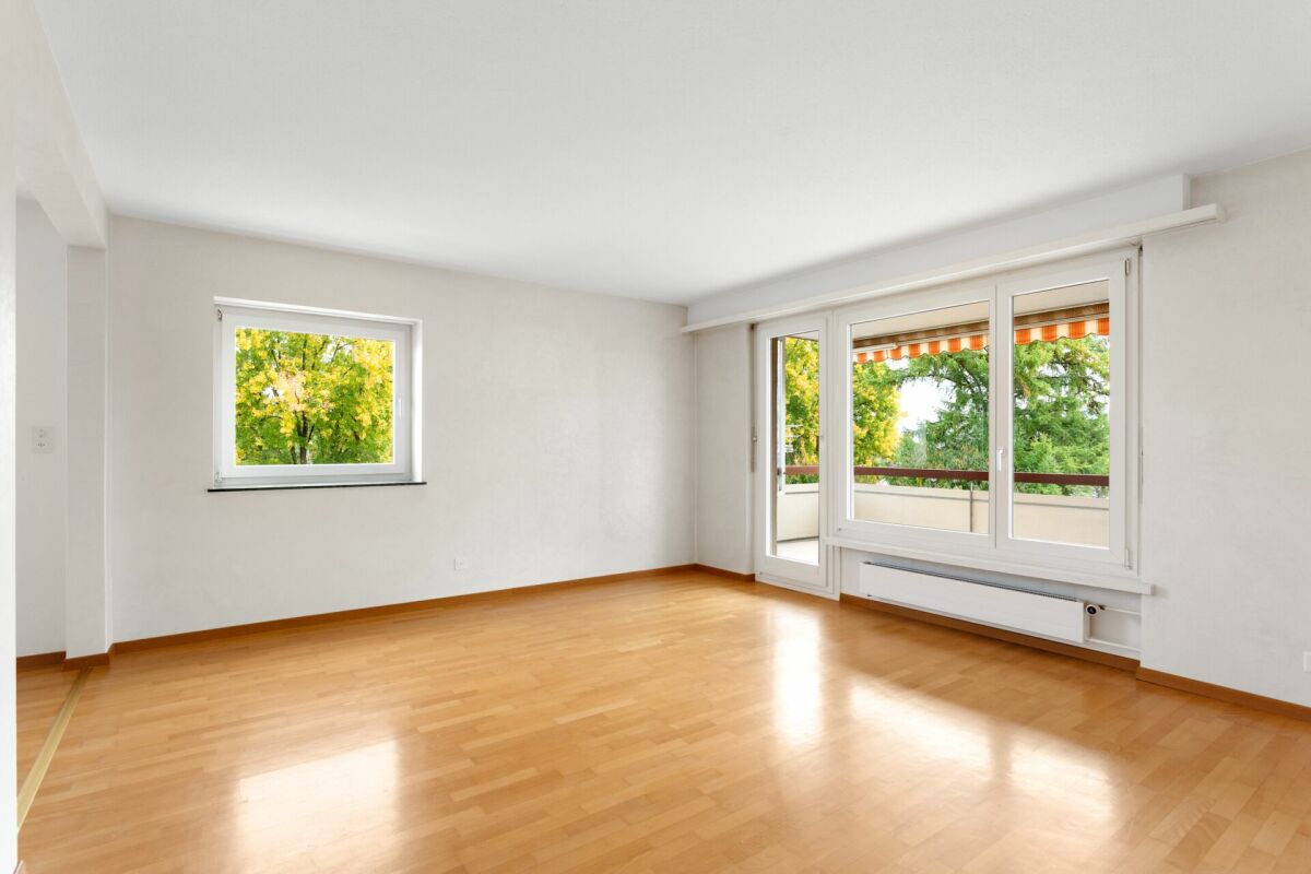 Diese lichtdurchflutete Wohnung im 2. OG überzeugt durch ihre grosszügige Raumaufteilung, die ruhige und sonnige Lage sowie die zahlreichen Gemeinschaftseinrichtungen, die Lebensqualität garantieren.Ausstattung & Highlights • Ein offenes Zimmer schliesst direkt an das Wohnzimmer an und kann bei Bedarf durch eine Trennwand wieder separiert werden - so wird aus der 4 ½- eine 1 ½-Zi.-Wohnung • Helle Räume mit attraktiver Grundrisseinteilung. Klare Trennung von Wohn- und Schlafbereich • Zwei sonnige Balkone mit Aussicht • Küche mit Granitabdeckung, Glaskeramikkochfeld, hochliegendem Backofen, Mikrowelle, Geschirrspüler, Kühlschrank mit Tiefkühlfach • Badezimmer mit Badewanne/WC/Lavabo sowie separates Gäste-WC • Praktischer Einbauschrank • Lift • Kellerabteil und eigener Wasch-/Trockenraum im Untergeschoss mit Waschmaschine, Tumbler und Trog • Tiefgaragenparkplatz Nr. 18 und Aussenparkplatz Nr. 18. • Gemeinschaftliche Nutzung von Hallenbad, Sauna, Fitnessraum, Partyraum, Kinderspielplatz und Besucherparkplätzen • Ruhige, familienfreundliche Lage mit Südausrichtung Technisches & Bausubstanz • Massive Bauweise, verputzte Fassade, Flachdach • Kunststofffenster mit Doppelverglasung, Rollläden, Sonnenstoren • Zentrale Gas-/Ölheizung mit Radiatoren • Bodenbeläge: Parkett in Küche, Wohn- und Schlafräumen; Platten in Nasszellen Investitionen in den letzten 10 Jahren • Wände neu gestrichen (2011, ausser Wohnzimmer) • Geschirrspüler & Trockner ersetzt (2019) • Waschmaschine ersetzt (Anfang 2022) • Aufhängung im Trockenraum erneuert (2021) Fazit: Eine helle Wohnung mit viel Komfort, sonniger Lage und attraktiven Gemeinschaftseinrichtungen - ideal für Familien, Paare oder Personen, die Ruhe und Lebensqualität schätzen.Der Gesamtkaufpreis für die 4 ½-Zi.-Wohnung (CHF 841'000.-) inklusive Tiefgaragenparkplatz (CHF 30'000.-) und Aussenparkplatz (CHF 11'000.-) beträgt CHF 890'000.-. Der Verkaufspreis ist bankgeprüft.