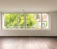 • empty room, sliding glass doors, terrace, beige tiles, large windows