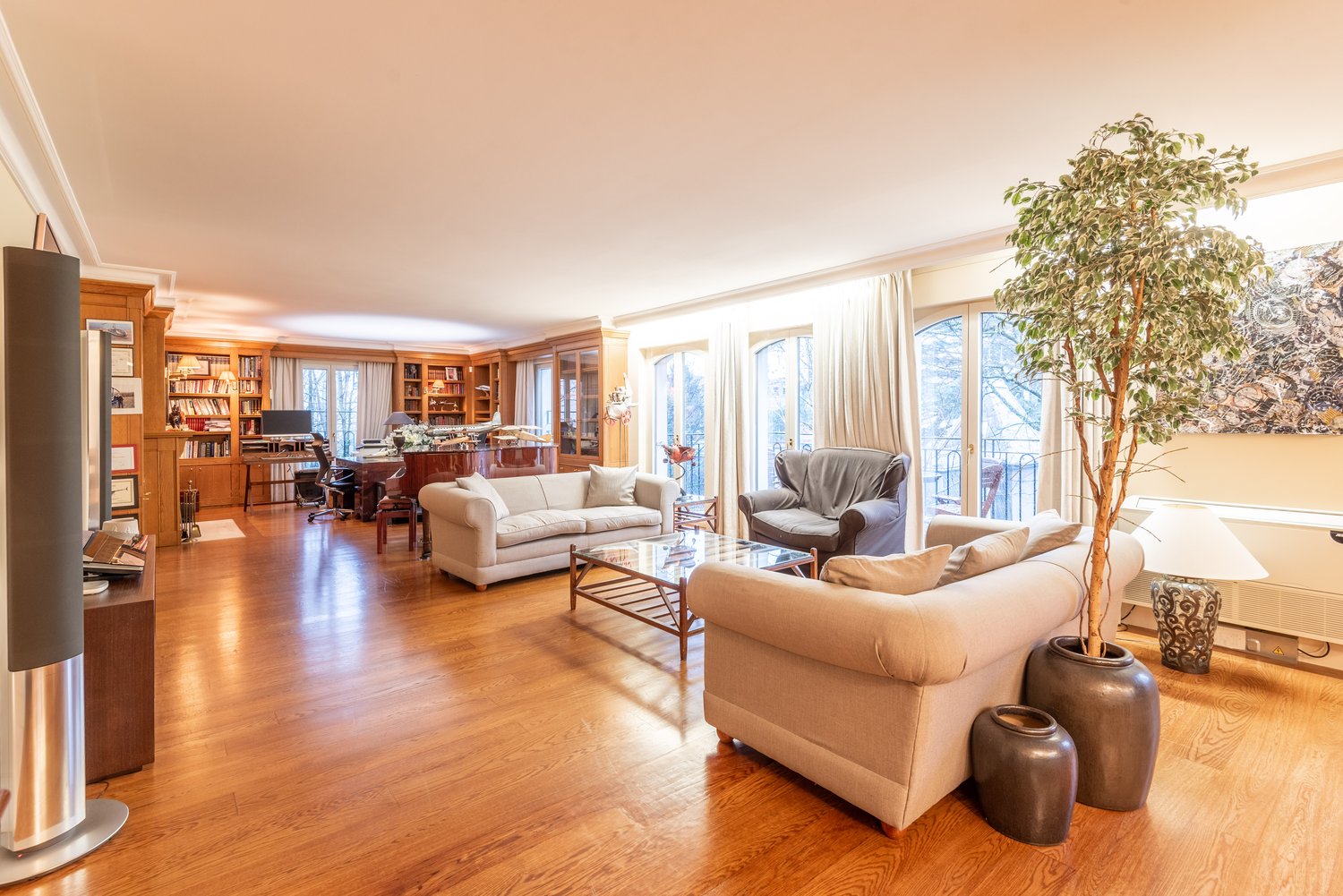 Situé au 8ème et dernier étage d'un immeuble de standing, au coeur du quartier prisé de Florissant, ce superbe attique traversant baigné de lumière vous ravira par son impressionnante terrasse en U joliment arborée d'une surface de 160 m² à la vue imprenable.Cet objet rare à la vente, confectionné avec des matériaux de grande qualité, offre de beaux volumes et une belle hauteur sous plafond. Toutes les pièces sont pourvues de grandes baies vitrées avec un accès direct à la terrasse, ce qui atténue la séparation entre extérieur et intérieur.D'une surface PPE de 160 m², la partie jour se compose d'un hall d'entrée avec armoires intégrées, d'un très beau séjour et d'une cuisine entièrement équipée et habitable avec accès sur la terrasse. La partie nuit offre une grande suite parentale avec des rangements sur mesure et une salle de bains attenante complète et d'un dressing. Une seconde chambre ainsi qu'une salle de douche avec hammam et WC complètent l'espace nuit.- Attique traversant- Surf. habitable 160 m²- 8ème et dernier étage- Immeuble de standing- 2 chambres & 2 salles de bains- Terrasse panoramique 160 m²- Lumineux et calmeCet attique conviendra parfaitement à une clientèle désirant profiter d'une vue imprenable. Son cadre privilégié avec ses vastes espaces de vie, son confort unique et son emplacement idéal proche de toutes les commodités font de cet objet un bien très recherché.Une cave et un box viennent parfaire ce bien d'exception.Im 8. und letzten Stock eines Luxusgebäudes im Herzen des beliebten Viertels Florissant gelegen, wird Sie dieses wunderschöne, lichtdurchflutete Penthouse mit seiner beeindruckenden U-förmigen, schön bepflanzten Terrasse mit einer Fläche von 160 m² und einer atemberaubenden Aussicht begeistern.Dieses seltene Verkaufsobjekt, das aus hochwertigen Materialien gefertigt wurde, bietet großzügige Räume und hohe Decken. Alle Räume verfügen über große Fenster mit direktem Zugang zur Terrasse, wodurch die Trennung zwischen Innen und Außen aufgehoben wird.Auf einer PPE-Fläche von 160 m² besteht der Wohnbereich aus einer Eingangshalle mit Einbauschränken, einem sehr schönen Wohnzimmer und einer voll ausgestatteten und bewohnbaren Küche mit Zugang zur Terrasse.Der Schlafbereich bietet eine große Master-Suite mit maßgeschneiderten Einbauschränken und einem angrenzenden kompletten Badezimmer sowie einem Ankleidezimmer. Ein zweites Schlafzimmer sowie ein Duschraum mit Dampfbad und WC vervollständigen den Nachtbereich.- Durchgehendes Dachgeschoss- Wohnfläche 160 m²- 8. und letzter Stock- Hochwertiges Gebäude- 2 Schlafzimmer & 2 Badezimmer- Terrasse mit Panoramablick 160 m².- Hell und ruhigDieses Penthouse eignet sich perfekt für eine Klientel, die einen atemberaubenden Ausblick genießen möchte. Sein privilegierter Rahmen mit seinen großzügigen Wohnräumen, sein einzigartiger Komfort und seine ideale Lage in der Nähe aller Annehmlichkeiten machen dieses Objekt zu einem sehr gefragten Objekt.Ein Keller und eine Box vervollständigen diese außergewöhnliche Immobilie.Located on the 8th and last floor of a luxury building, in the heart of the sought-after Florissant district, this superb attic apartment bathed in light will delight you with its impressive U-shaped terrace nicely planted with trees, with a surface area of 160 m² and a breathtaking view.This rare object for sale, made with high quality materials, offers beautiful volumes and a beautiful height under ceiling. All rooms have large windows with direct access to the terrace, which reduces the separation between the outside and inside.With a surface area of 160 m², the day part is composed of an entrance hall with integrated cupboards, a very nice living...