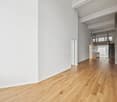 • Wide hallway, hardwood floors, white walls, doors, windows