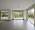 • empty room, sliding glass doors, terrace, beige tiles, large windows