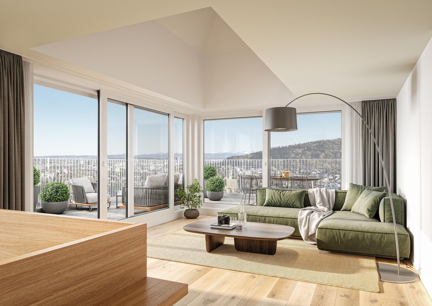 ERLEBEN SIE HOHEN WOHNKOMFORT IN ZÜRICH-OERLIKONTauchen Sie ein in modernes, luxuriöses Wohnen in dieser voll ausgestatteten, stilvollen 1½-Zimmer-Attikawohnung. Perfekt in der Gegend von Zürich-Oerlikon, bietet diese beeindruckende Wohnung Komfort und Bequemlichkeit in unvergleichlicher Lage.| Lage:Gelegen in einem urbanen Bereich, vereint diese Attikawohnung eine perfekte Balance aus zentraler Lage und Ruhe. Sie haben bequemen Zugang zu allen Annehmlichkeiten, die Zürich-Oerlikon zu bieten hat, während Sie sich in Ihrer privaten Oase zurückziehen können.| Ausstattung: • Das grosszügige und einladende Wohnzimmer besticht mit einem markanten roten Ledersofa, das einen kraftvollen Akzent zu den warmen Eichenparkettböden setzt. Die grossen Fenster durchfluten den Raum mit natürlichem Licht, und der Kamin sorgt für eine angenehme Atmosphäre. • Die Küche ist ein Traum für jeden Hobbykoch, ausgestattet mit hochwertigen Siemens-Geräten, darunter ein Doppelofen und ein grosszügiger Kühlschrank mit Gefrierfach. Die edlen Arbeitsflächen aus schwarzem Granit und moderne Schränke bieten viel Platz und Komfort. • Das Badezimmer bietet Luxus mit einer geräumigen Walk-in-Dusche, Fussbodenheizung und modernen Miele-Waschmaschinen und -Trocknern. • Beide Schlafzimmer sind komplett möbliert und haben direkten Zugang zu den privaten Terrassen. Das Hauptschlafzimmer strahlt in beruhigenden Blautönen, während das zweite Schlafzimmer warme, erdige Farben bietet. • Von den Schlafzimmern und dem Wohnzimmer zugänglich, bieten die beiden Terrassen einen weiten Blick und viel Raum für Entspannung im Freien oder für geselliges Beisammensein. • Die Wohnung ist mit einer Klimaanlage ausgestattet, die das ganze Jahr über für angenehme Temperaturen sorgt und die Wohnung auch in den warmen Sommermonaten zu einem perfekten Rückzugsort macht. | All-Inclusive Service: • Miete inklusive sämtlicher Nebenkosten wie Wasser, Strom und Heizung • Vollständig möblierte Wohnung mit hochwertigem Design und charmanten Details • Regelmässige 14-tägige Reinigung der gesamten Wohnung, inklusive Wechsel von Bettwäsche, Handtüchern und Müllentsorgung • Highspeed-WiFi-Internetzugang für ungestörtes Arbeiten und Streaming • 7 Tage die Woche telefonische Erreichbarkeit sowie eine 24-Stunden-Notfallnummer • Premium-Zattoo-TV-Paket mit 250 Kanälen • Parkplatz in der Tiefgarage inklusive * Die Miete versteht sich zuzüglich der gesetzlichen Mehrwertsteuer von 1.8 % sowie der einmaligen Endreinigung. Es gilt ein Mindestaufenthalt von einem Jahr.********************************************************************EXPERIENCE LUXURIOUS LIVING IN ZÜRICH-OERLIKONImmerse yourself in modern, luxurious living with this fully equipped, stylish 1½-room attic apartment. Perfectly located in the area of Zürich-Oerlikon, this impressive apartment offers unparalleled comfort and convenience.| Location:Situated in an urban area, this attic apartment provides the perfect balance between centrality and tranquility. Enjoy easy access to all the amenities that Zürich-Oerlikon has to offer, while retreating to your private oasis.| Amentities: • The spacious and inviting living room is highlighted by a striking red leather sofa that adds a bold touch against the warm oak parquet floors. Large windows flood the space with natural light, and the fireplace creates a cozy, welcoming atmosphere. • The kitchen is a chef’s dream, equipped with high-end Siemens appliances, including a double oven and a generous fridge-freezer. Elegant black granite countertops and modern cabinetry offer plenty of space and convenience. • The bathroom is designed for luxury, featuring a large walk-in shower, underfloor heating, and modern Miele washer and dryer units. • Both bedrooms are fully furnished and have direct access to the private terraces. The master bedroom is styled in calming blue tones, while the second bedroom exudes warmth with rich, earthy colors. • Accessible from both the bedrooms and the living room, the two terraces provide expansive views and plenty of space for outdoor relaxation or entertaining. • Air conditioning is installed in the apartment, ensuring a comfortable temperature year-round, making it a perfect retreat even during the warm summer months. | All-Inclusive Service: • Rent includes all utilities such as water, electricity and heating. • Fully furnished apartment with high-quality design and charming details. • Regular bi-weekly cleaning of the entire apartment, including the changing of bed linens, towels and waste disposal. • High-speed WiFi internet access for uninterrupted work and streaming. • 7-day a week telephone support and a 24-hour emergency hotline. • Premium Zattoo TV package with 250 channels. • Parking space in the underground garage included. * The rent is exclusive of the statutory VAT of 1.8 % and the one-time final cleaning fee. A minimum stay of one year applies