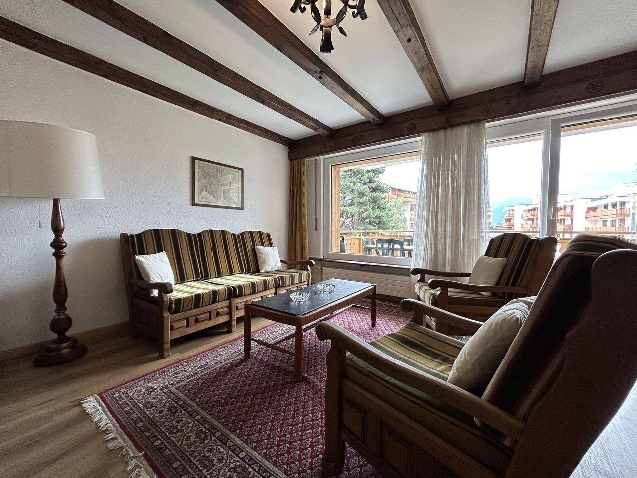 Découvrez ce superbe appartement idéal pour des vacances inoubliables à la montagne.Situé dans un quartier résidentiel calme, cet appartement de 5.5 pièces offre un cadre exceptionnel à proximité immédiate du Golf Ballesteros.L'appartement se compose de la façon suivante :- Un hall d'entrée avec des armoires- Un salon avec cheminée décorative non fonctionnelle et un accès sur le balcon Sud avec un ensoleillement toute la journée et un aperçu sur les montagnes environnantes- Une suite parentale avec salle de bain avec bain et douche et dressing- Une cuisine séparée entièrement équipée avec un économat et un accès sur le balcon Ouest- Un WC visiteur- A l'étage : Une chambre avec un lit de 140*200 et une salle de douche + 1 lit gigogne pour 2 enfants. Il est loué avec un accès à la buanderie commune, un casier à ski pour l'hiver et un garage privé.Idéalement situé en face de l'arrêt de bus, ce bien offre un accès rapide et direct au village ainsi qu'aux départs des télécabines.Tarifs de location pour l'été en 3 pièces :Location semaine mai/octobre : CHF 1'800.- / semaineLocation semaine juin/septembre : CHF 2'000.- / semaineLocation Omega : CHF 500.- / nuitLocation Juillet : CHF 6'900.- / moisLocation Août : CHF 7'500.-/ moisLocation à la saison de 2 mois : CHF 14'000.- / saison de 2 moisTarifs de location pour l'hiver en 4 pièces :Location semaine janvier/mars/avril : CHF 2'800.-/ semaineLocation semaine février : CHF 3'400.- / semaineLocation à la semaine Noël-Nouvel-an : CHF 3'800.- / semaineLes prix affichés sont toutes charges comprises, sauf taxe de séjour et nettoyage de sortie.