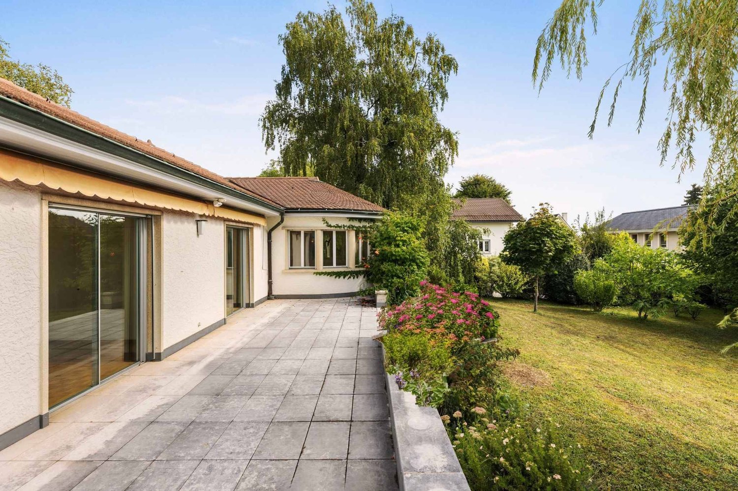 Nichée dans un cadre privilégié, cette maison historique, classée aux monuments et sites, est aujourd'hui divisée en trois appartements indépendants.Elle peut toutefois être facilement réunie pour former une vaste villa familiale.Édifiée en 390, cette maison de maître témoigne d'un art de vivre à la fois authentique et raffiné. Entièrement rénovée avec soin, elle marie harmonieusement le charme de son passé avec le confort moderne.Chaque détail raconte une histoire : les vitraux colorés du jardin d'hiver, les faïences artisanales de Carouge, les parquets en chêne massif qui rythment les espaces avec élégance. Même les escaliers communs, agrémentés de vitraux d'époque, invitent à une promenade lumineuse et pleine de douceur.La maison s'épanouit au cur d'un parc privé de plus de 2'100 m², un véritable havre de paix où la nature se fait complice de la sérénité qui règne ici.Répartie sur trois niveaux et couronnée d'une tourelle emblématique, la maison se compose ainsi : Au sous-sol : un grand dégagement, chaufferie, local à pellets, trois caves, un dépôt, ainsi qu'un garage avec porte automatique. Au rez-de-chaussée : un appartement de 6 pièces (~150 m²) avec jardin privatif, cuisine équipée, vaste séjour en enfilade, deux grandes chambres, une chambre plus petite, salle de bains/douche et WC invités. Au premier étage : un autre appartement de 6 pièces (~150 m²), comprenant cuisine équipée, séjour, salle à manger, une grande chambre, deux plus petites, salle de bains/douche/WC et WC invités. Aux deuxième et troisième étage : un duplex de 5.5 pièces (~132 m²) doté d'une terrasse de 65 m², cuisine ouverte, séjour/salle à manger, une grande chambre, deux petites, salle de bains/douche/WC, WC invités, avec accès direct à la terrasse en toiture. l'extérieur, le portail en fer forgé, les éclairages automatiques, les grands arbres et l'arrosage automatique complètent ce tableau.La propriété dispose également de 10 places de parking extérieures, d'un garage double et d'un garage au sous-sol avec portes automatiques.Cette demeure, rare sur le marché, conjugue élégance intemporelle et potentiel familial. Son charme authentique se révèle pleinement lors d'une visite.