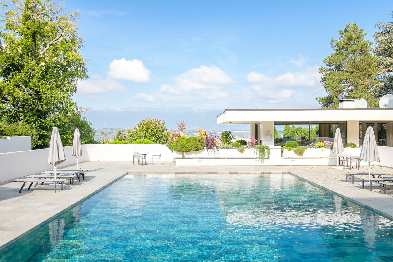 Gebaut im Jahr 2022 mit sehr hochwertigen Materialien und mit dem THPE-Label ausgezeichnet, bietet Ihnen dieses prächtige Anwesen mit 12 Zimmern mehr als 890m² unvergleichlichen Luxus mit einem Panoramablick auf den Genfersee und die Juraberge.Alle Annehmlichkeiten dieser Villa sind mit unzähligen luxuriösen Details ausgestattet, wie zum Beispiel ihr weißer Marmorboden, die Panoramafenster oder der Aufzug, der die 4 Stockwerke und das Untergeschoss bedient.Im Wohnbereich genießen Sie ein großes Wohnzimmer mit Kamin, ein Esszimmer und eine ausgestattete Küche.Viele weitere Räume, wie ein Kinosaal, ein Fitnessraum, ein Spa-Bereich oder ein Innenpool, werden Sie erfreuen und entspannen.Die Villa verfügt auch über etwa 240 m² ungenutzten Raum, der in einen Kunstkonservierungsraum, einen Weinproberaum usw. umgewandelt werden kann.Der Nachtbereich besteht aus einer Master-Suite und 3 Schlafzimmern, die jeweils über ein Ankleidezimmer und ein eigenes Badezimmer verfügen.Draußen werden Sie von einer Dachterrasse von über 160m², sorgfältig begrünt, und ihrem großen Infinity-Pool mit einem außergewöhnlichen Blick begeistert sein. All dies ist mit einem privaten Garten von über 3'000m² verbunden, der Ihnen ermöglicht, die Pracht der Landschaft zu genießen.Untergeschoss:- Ein Eingangsbereich auf der Garagenebene- Ein Technikraum mit Waschküche- Ein Heizungsraum- Ein Eingangs-Ankleidezimmer- Zugang zum Aufzug- Ein großer Mehrzweckraum (Weinkeller, Kinosaal, Kunstkonservierung...)Erdgeschoss:- Ein Fitnessraum (kann in ein Schlafzimmer umgewandelt werden)- Ein Duschraum- Ein beheizter Innenpool- Eine Sauna- Ein klimatisierter Weinkeller1. Etage:- Eine Master-Suite mit großem Badezimmer und Ankleidezimmer- 3 En-Suite-Schlafzimmer - Ankleidezimmer und Badezimmer- Eine Waschküche2. Etage:- Ein Eingangsbereich mit Zugang zum privaten Garten- Ein Besucher-Ankleidezimmer- Ein großes Wohnzimmer mit durchgehendem Kamin- Eine ausgestattete Küche mit Insel- Ein Esszimmer- Eine Besucher-ToiletteDach:- Photovoltaik-Module- Solarthermische PaneeleAnhang:- 3 Autoboxen- Ein Außenparkplatz (im Innenbereich der Garage)Außenanlagen:- Eine Steinterrasse von 160m2- Ein Balkon von etwa 22m2- Ein Außen-Infinity-Pool- Ein Privatgarten- Ein Innenhof mit LichtschachtBesonderheiten:- Eine Fläche von etwa 240 m² ungenutzten Raum kann in einen Kunstkonservierungsraum, einen Weinproberaum usw. umgewandelt werden.Diese Villa befindet sich in Cologny, einer der exklusivsten Adressen Europas, 10 km vom internationalen Flughafen Genf und nur 5 Minuten vom Stadtzentrum entfernt.Cologny ist eine der begehrtesten Gemeinden im Kanton Genf. Sie besteht hauptsächlich aus Wohnvierteln mit Familienvillen und gehobenen Wohnanlagen. Die Nähe zum Zentrum von Genf und die zahlreichen Aktivitäten und Infrastrukturen, die in der Gemeinde verfügbar sind, wie Golf, Reiten, private und öffentliche Schulen, sowie der bemerkenswerte, freie Blick auf den Mont Blanc sind Vorteile, die zukünftige Bewohner anziehen werden.Dieses Projekt von 7 zeitgenössischen Villen, deren Luxusqualität unübertroffen ist, wurde umweltgerecht geplant mit geothermischen Heiz- und Kühlsystemen, isolierten Fassaden und Fenstern sowie einem ökologischen Dach.