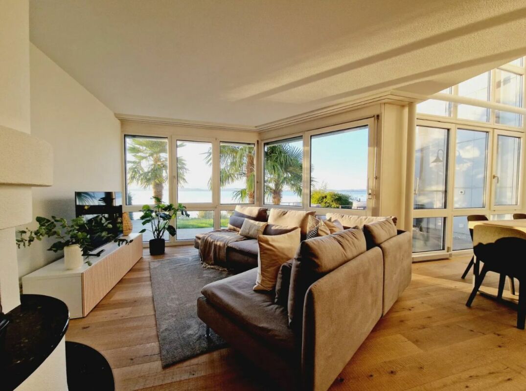 Wohnen mit unverbaubarem Panoramablick auf See und Berge klingt nach Ihrem Traum? Dann werden Sie diese Wohnoase lieben. Die Aussicht begeistert jeden Tag aufs Neue und macht dieses Zuhause zu einem Ort, an dem man gerne verweilt. Hier wohnen Sie an traumhafter, ruhiger Lage und gleichzeitig sehr zentral. Ob als Single, Paar, Familie oder für Menschen im Ruhestand hier werden alle glücklich. Das Haus selbst ist barrierefrei gestaltet und damit ideal für jede Lebensphase. Schon beim Betreten wird spürbar: Hier stehen Alltag und Genuss in perfekter Balance. Die lichtdurchfluteten Räume, das stilvolle Ambiente, das heimelige Weissholztäfer, und das unvergleichliche Panorama verleihen der Wohnung eine besondere Atmosphäre. In der obersten Etage sind Sie für sich alleine was ein weiterer Vorteil ist. In dieser Wohnoase fällt sofort der elegante Marmorboden ins Auge, der sich durch die gesamte Wohnoase zieht. Bereits von hier aus eröffnet sich der traumhafte Ausblick. Der Wohnbereich mit seinem gemütlichen Cheminée und Weitblick ist ein absoluter Wohlfühlort, der einfach nie seinen Reiz verliert. Die sonnige Terrasse davor lädt dazu ein, die Berg- und Seesicht zu jeder Tageszeit zu geniessen. Der beheizte Wintergarten eignet sich ideal als Esszimmer. Auch hier werden Sie von der wunderschönen Weitsicht verwöhnt, die gemeinsame Momente mit Familie und Gästen immer zu etwas Besonderem macht. Die moderne Küche mit Kochinsel fügt sich harmonisch in den Grundriss ein und ist mit hochwertigen Geräten ausgestattet. Kochen wird hier zum echten Vergnügen. Die drei Schlafzimmer haben eine Weitsicht Richtung Berge oder sogar hin bis zum See. Das Holztäfer sorgt für einen heimeligen, warmen Charakter. Die moderne Nasszelle mit Fenster überzeugt mit einer bodenebenen, begehbaren Dusche. Ergänzt wird dieser Komfort von einer zusätzlichen Gäste-Toilette. Das Reduit mit Waschturm und viel Stauraum sowie der geräumige Estrich, erleichtert den Alltag und macht das Raumangebot komplett. Die Wohnung wurde im Jahr 2020 vollständig saniert (ausser die Marmorböden) und bietet unzählige Extras wie Einbauschränke, 3-fach-Verglasung der Fenster, edle Marmorböden, hochwertige Materialen und vieles mehr. Ein privater Keller im Untergeschoss sowie ein zusätzlicher Abstellraum im Eingangsgeschoss gehören ebenfalls zu Ihrem neuen Zuhause. Für die Gemeinschaft stehen ein Veloraum und ein Autowaschplatz bereit. Ein Garagenplatz und ein Aussenparkplatz runden das Angebot ab. Das erwartet Sie ausserdem: - Unverbaubare Weitsicht auf See und Berge - Sonnenverwöhnte Terrasse - Zentrale und ruhige Lage - Barrierefreie Wohnung - Heller Wohnbereich mit Cheminée und Weitsicht - Marmorböden in der gesamten Wohnung - Offene Küche mit Kochinsel - Nasszelle mit Fenster und begehbarer Dusche - Gäste-Toilette - Hochwertige Materialien und Verarbeitung - Fenster mit 3-fach-Verglasung - Mückengitter - Einbauschränke und Einbaugarderobe - Reduit in der Wohnung mit Waschturm - Keller - Zusätzlicher Abstellraum - Estrich - Garagenstellplatz zu erwerben à CHF 50'000.-- - Aussenparkplatz zu erwerben à CHF 35'000.-- Nutzen Sie die Gelegenheit und rufen Sie uns an, um sich selbst davon zu überzeugen! Sie möchten Ihr Haus oder Ihre Wohnung verkaufen und benötigen eine Bewertung? Als zertifiziertes Mitglied der Schweizerischen Maklerkammer SMK garantieren wir Ihnen eine marktgerechte Einschätzung und eine kostenlose Erstberatung für die Vermarktung Ihrer Liegenschaft. Besuchen Sie uns auf www.nobilimmo.ch