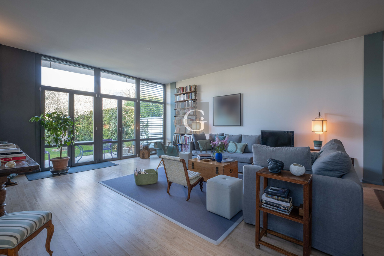Ce superbe loft contemporain de 9 pièces bénéficie d'un emplacement privilégié au coeur d'un agréable parc de plus de 27'000m2.Idéalement situé sur la commune de Troinex cet appartement est très bien desservi par les transports en commun et se situe à seulement quelques minutes du centre de Carouge. Rénové avec goût en 2011 aux finitions de qualité, il offre des très beaux et lumineux espaces ainsi qu'une impressionnante hauteur sous-plafond.Traversant, cet appartement dispose d'un jardin privatif de 198m2 joliment arborisé et de deux terrasses de 90m2 dont une sur le toit offrant une très bonne exposition et une magnifique vue dégagée sur le Jura et le Salève.Offrant une agréable surface habitable de 260m2, ce bien est distribué de la manière suivante : La partie jour s'ouvre sur une entrée suivie d'un magnifique espace de réception, entièrement ouvert et baigné de lumière, composé du salon, de la salle à manger et d'une cuisine entièrement équipée. Cette partie est composée d'une buanderie privative.La partie nuit offre une spacieuse chambre parentale avec salle de bain complète privative et dressing ainsi que trois chambres à coucher ouvertes sur l'extérieur et une salle de douche. Une cave dans le sous-sol de l'immeuble, une place de parking extérieure viennent compléter ce bien d'exception.Il est à noté qu'un box fermé pour une voiture est en sus du prix. This superb contemporary loft of 9 rooms benefits from a privileged location in the heart of a pleasant park of more than 27'000m2.Ideally located in the commune of Troinex, this apartment is very well served by public transport and is only a few minutes from the center of Carouge. Tastefully renovated in 2011 with quality finishes, it offers beautiful and bright spaces as well as an impressive ceiling height.Crossing, this apartment has a private garden of 198m2 nicely planted with trees and two terraces of 90m2 including one on the roof offering a very good exposure and a magnificent view on the Jura and the Salève.Offering a pleasant living space of 260m2, this property is distributed as follows: The day part opens onto an entrance followed by a magnificent reception area, entirely open and bathed in light, composed of the living room, the dining room and a fully equipped kitchen. This part is composed of a private laundry room.The night area offers a spacious master bedroom with private full bathroom and dressing room as well as three bedrooms open to the outside and a shower room. A cellar in the basement of the building and an outside parking space complete this exceptional property.It should be noted that a closed box for a car is in addition to the price.