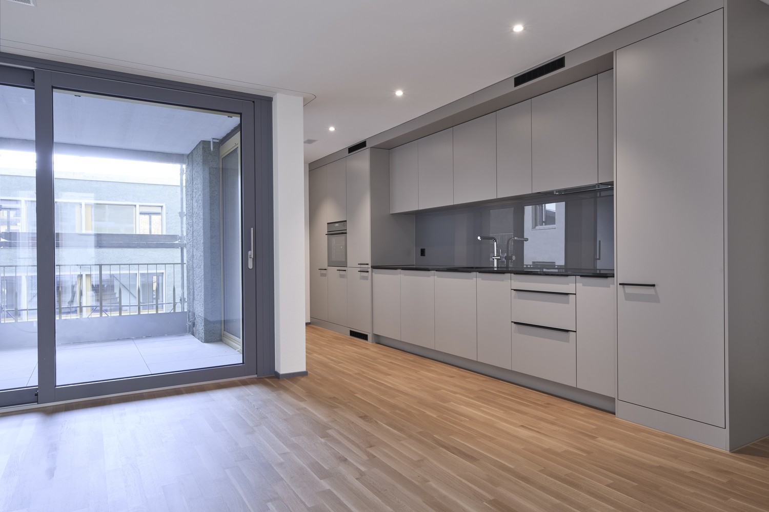 Sonnig, elegant und bis ins Detail durchdacht: Diese südorientierte 5.5-Zimmer-Wohnung (172 m²) im Erdgeschoss verbindet modernes Design mit spürbarem Wohnkomfort. Bereits das grosszügige Entrée mit integrierter Garderobe schafft Ankommen-Gefühl und führt nahtlos in den weitläufigen Wohn-/Essbereich. Naturgeöltes Eichenparkett in allen Wohnräumen, eine angenehme Raumhöhe von 2.5 m und die ruhige Ausrichtung zum begrünten Innenhof verleihen der Wohnung eine warme, behagliche Atmosphäre - ideal zum Zurückziehen, Geniessen und Empfangen.Herzstück ist die hochwertige Designküche, die Ästhetik und Funktion perfekt vereint: Backofen und CombairSteamer, ein Induktions-Glaskeramik-Kochfeld (BORA) mit integriertem Umluft-Abzug sowie eine imposante 3.6 m lange Kücheninsel machen Kochen zum Erlebnis - ob für das schnelle Frühstück oder das stilvolle Dinner mit Gästen. Dank grosser Kühl-/Gefrierkombi, Geschirrspüler und edlen, polierten Naturstein-Arbeitsplatten bleibt alles formschön, robust und alltagstauglich.Wenn sich die grossen Türen zur 10.9 m² grossen, überdachten Loggia öffnen, verschmilzt Innen mit Aussen: Der Blick geht in den ruhigen, grünen Innenhof, während der separate Gartensitzplatz (11.0 m²) zum privaten Outdoor-Wohnzimmer wird - ein wunderbarer Ort für entspannte Stunden und angenehmes Raumklima an warmen Tagen.Der private Bereich überzeugt mit zwei klug geschnittenen Zimmern: das Master-Bedroom (15.9 m²) mit Bad-en-Suite (Dusche/WC) für maximale Privatsphäre sowie ein weiteres Zimmer (12.4 m²), das sich je nach Lebensphase als Kinderzimmer, Gästezimmer oder Homeoffice anbietet. Ergänzt wird das Raumprogramm durch ein zweites Badezimmer mit Badewanne, WC und eigenem Waschturm (V-Zug) - praktisch, zeitgemäss und elegant gelöst.Technisch ist die Wohnung auf Komfort getrimmt: Die Fussbodenheizung wird nachhaltig über Fernwärme betrieben und sorgt für gleichmässige, angenehme Wärme. Das integrierte eSmart-System ermöglicht die komfortable Steuerung von Lüftung und Temperatur, zeigt ÖV-Verbindungen in Echtzeit und unterstützt sogar den Familienkalender - intuitiv bedienbar über eine zentrale Steuerung. Ein 8 m² grosses Kellerabteil bietet zusätzlichen Stauraum; Veloparkplätze stehen bequem in der Tiefgarage zur Verfügung. Bezug ab sofort oder nach Vereinbarung. Highlights: • Südorientierte 5.5-Zimmer-EG-Wohnung mit 172 m² Wohnfläche • Grosszügiges Entrée mit Garderobe & viel Stauraum • Heller Wohn-/Essbereich mit naturgeöltem Eichenparkett • ruhige Lage zum begrünten Innenhof • Raumhöhe 2.5 m für ein luftiges Wohngefühl • Aussenbereiche: Loggia 10.9 m² & Gartensitzplatz 11.0 m² • Designküche: Backofen & CombairSteamer, BORA Induktion mit integriertem Umluft-Abzug, 3.6 m Kücheninsel, grosse Kühl-/Gefrierkombi, Geschirrspüler, polierte Naturstein-Arbeitsplatten • 2 Schlafzimmer: 15.9 m² (Master mit Dusche/WC en-suite) & 12.4 m² - ideal auch als Homeoffice • 2 Bäder: En-suite: Dusche + WC & Bad 2: Badewanne + WC + Waschturm (V-Zug) • Wärme & Effizienz: Fussbodenheizung mit nachhaltiger Fernwärme • Smart Living: eSmart-System (Klima & Lüftung steuern, ÖV in Echtzeit, Familienkalender) • Stauraum & Mobilität: 8 m² Kellerabteil, Veloparkplätze in der Tiefgarage • Bezug: ab sofort oder nach Vereinbarung Interesse geweckt? Vereinbaren Sie jetzt Ihren Wunschtermin für eine persönliche Besichtigung - wir freuen uns, Sie vor Ort willkommen zu heissen.