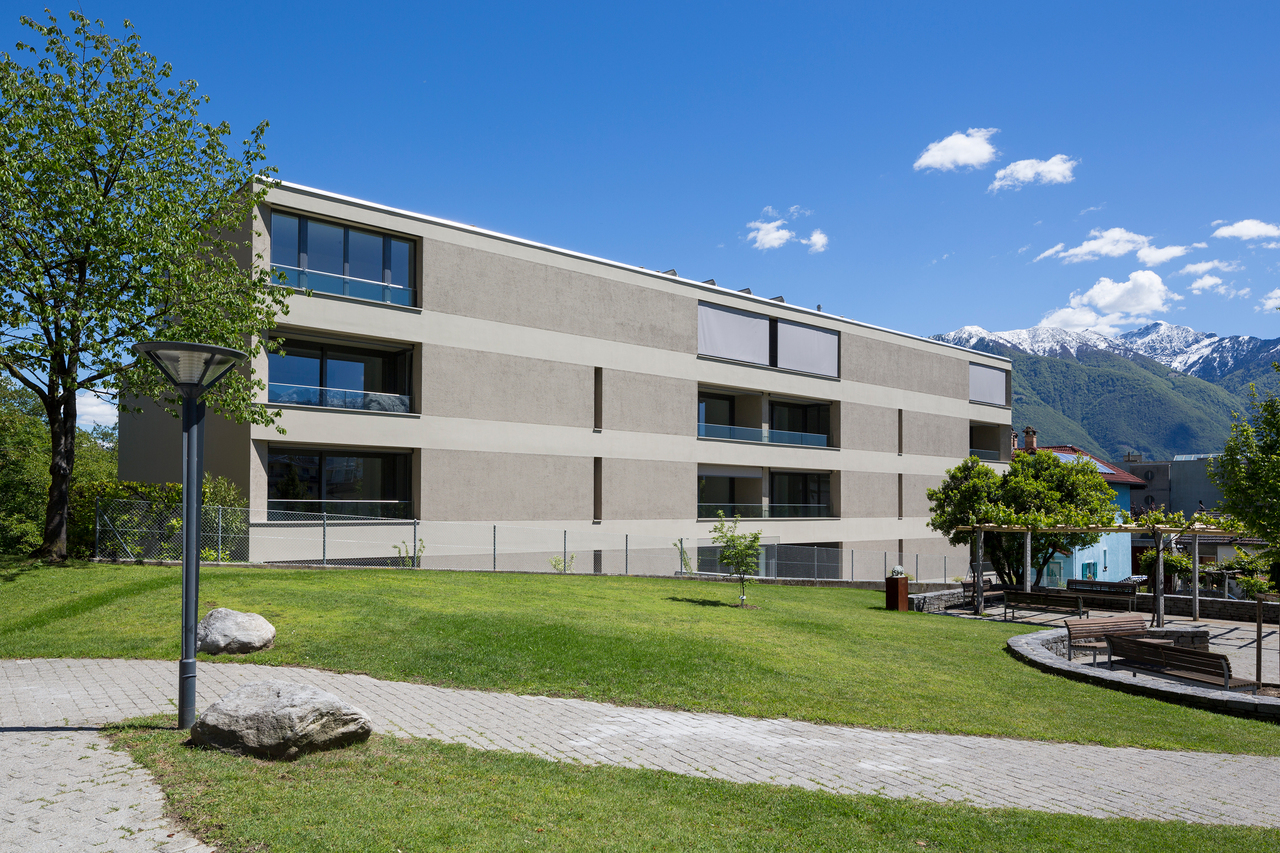 Bellissima residenza con accesso direttamente dalla Via Locarno, ottimamente esposta al sole ed in prossimità di vari servizi come centri commerciali, trasporti pubblici, zone di svago, sorge sul mappale 96 di Losone.La costruzione si sviluppa per un piano interrato e cinque piani fuori terra. Tutti gli appartamenti sono dotati di ampie vetrature della zona giorno che costituiscono garanzia di luminosità degli spazi a tutte le ore del giorno, in modo particolare durante il periodo invernale. Le terrazze, semi-incavate nel volume, sono protettive ed offrono fruibilità durante tutto l’anno.La lavanderia è posizionata al livello interrato. Le cantine sono posizionate in corrispondenza dei piani abitabili, abbinate ai singoli appartamenti in ogni piano.L’autorimessa al piano interrato ospita 41 posti auto e uno spazioso locale biciclette.I locali tecnici sono disposti sullo stesso livello.La distribuzione del calore avviene mediante serpentine a bassa temperatura, la circolazione forzata del calore mediante pompe di circolazione a basso consumo di energia classe A.Proponiamo nuovo e generoso appartamento 4.5 locali nr. 0.4, con giardino e così composto:atrio d’entrata con armadi a muro, soggiorno-cucina open space , spaziosa terrazza, una camera da letto, bagno-doccia-wc, cantina e colona lavasciuga dedicata.L'appartamento dispone di un posteggio in autorimessa.--------------------------------------------------------------------------------------------------------------------Schöner Residenz mit direktem Zugang von der Via Locarno, sehr gut besonnt und in der Nähe von verschiedenen Dienstleistungen wie Einkaufszentren, öffentlichen Verkehrsmitteln, Erholungsgebieten, gelegen auf der Parzelle 96 von Losone.Die Konstruktion besteht aus einem Untergeschoss und fünf oberirdischen Stockwerke. Alle Wohnungen sind mit großen Fenstern im Wohnbereich ausgestattet, die eine Garantie für die Helligkeit der Räume zu jeder Tageszeit darstellen, besonders auch im Winterzeit. Die Terrassen, teilweise in das Volumen integriert, sind schützend und bieten eine ganzjährige Nutzbarkeit.Die Waschküche befindet sich im Keller. In den bewohnbaren Etagen befinden sich Kellerräume, die mit den einzelnen Wohnungen auf jeder Etage kombiniert sind.Die Garage im Untergeschoss verfügt über 41 Stellplätze und einen geräumigen Fahrradraum.Die Technikräume sind auf der gleichen Ebene angeordnet.Die Wärmeverteilung erfolgt über Niedertemperatur-Wärmetauscher, die Wärmezirkulation über Umwälzpumpen der Klasse A mit niedrigem Energieverbrauch.Wir bieten eine neue und großzügige 4.5-Zimmer-Wohnung nr. 0.4, mit Garten die sich wie folgt zusammensetzt:Eingangsbereich mit Einbauschränken, Wohnzimmer mit offener Küche, geräumige Terrasse, ein Schlafzimmer, Bad-Dusche-WC, Keller und eigene Waschtürme.Die Wohnung verfügt über einen Parkplatz in der Garage.