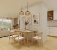 • Open living space, kitchen, large windows with balcony, tiled floor, balcony with mountain view