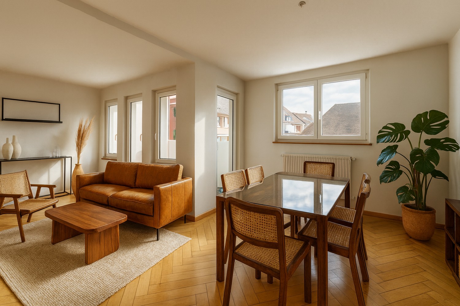 URBAN CHIC - EXKLUSIVE WOHNEN IM 4. STOCKEntdecken Sie den Inbegriff urbanen Komforts in dieser wunderschön eingerichteten 1-Schlafzimmer-Wohnung. Mit einer perfekten Mischung aus Stil und Funktionalität bietet diese Wohnung einen Rückzugsort für diejenigen, die eine erstklassige Lebensqualität suchen.Treten Sie ein in das grosszügige Schlafzimmer, ein Rückzugsort der Ruhe mit reichlich Stauraum für alle Ihre Bedürfnisse. Die Wohnung verfügt über eine voll ausgestattete Küche und ein neu renoviertes Bad mit Dusche und eleganten Armaturen. Darüber hinaus gibt es einen grossen Balkon, auf dem Sie Ihren Morgenkaffee geniessen können.| Lage:Die Wohnung befindet sich im lebhaften Kreis 5 in Zürich und bietet die perfekte Mischung aus urbanem Leben und natürlicher Schönheit. Dieser zentrale Ort ist von einer Mischung aus moderner und historischer Architektur umgeben. Die Limmat und der Wipkingerpark sind nur wenige Minuten entfernt und laden zum Entspannen ein. Direkt vor Ihrer Haustür befinden sich hervorragende öffentliche Verkehrsmittel und eine Vielzahl von Restaurants, Cafés und Geschäften in der Nähe. Das Viertel verbindet kulturelle Energie mit Grünflächen und ist somit ein idealer Ort, um das Beste von Zürich zu erleben.| Ausstattung: • Hochwertiger Parkettboden in allen Wohnräumen für ein warmes und gemütliches Ambiente • Grosszügige Fensterfronten und leichter, heller Vorhanggestaltung • Elegante, offene Wohn- und Essbereiche mit stilvollen, modernen Möbeln und Akzentstücken • Gemütliches Schlafzimmer mit einem komfortablen, gepolsterten Bett • Moderne, minimalistische Küche mit hochwertigen Einbaugeräten und viel Stauraum • Zeitloses Badezimmer mit grauen Natursteinfliesen, stilvollen Einbaumöbeln und Dusche • Gemütlicher Balkon mit Sitzgelegenheit, ideal für entspannte Stunden im Freien | All-Inclusive Service: • Miete inklusive sämtlicher Nebenkosten wie Wasser, Strom und Heizung • Vollständig ausgestattete Wohnung mit hochwertigem Design und charmanten Details • Regelmässige zweiwöchentliche Reinigung der gesamten Wohnung, inklusive Wechsel von Bettwäsche, Handtüchern und Müllentsorgung • Highspeed-WiFi-Internetzugang für ungestörtes Arbeiten und Streaming • 7 Tage die Woche telefonische Erreichbarkeit. • Premium-Zattoo-TV-Paket mit 450 Kanälen • Nutzung der stockwerkeigenen Waschküche • Parkplatz kann bei Bedarf angemietet werden für CHF 450.00 exkl. 8.1% MwSt. * Miete exklusive der gesetzlichen MwSt. von 3.8% und der einmaligen Endreinigungsgebühr.************************************************************************URBAN CHIC - EXCLUSIVE LIVING ON 4ND FLOORDiscover the epitome of urban comfort in this beautifully furnished 1-bedroom apartment. Offering the perfect blend of style and functionality, this apartment is a retreat for those seeking premium quality of life.Step into the spacious bedroom, a haven of tranquility with ample storage for all your needs. The apartment features a fully equipped kitchen and a newly renovated bathroom with a shower and elegant fixtures. Additionally, there is a large balcony where you can enjoy your morning coffee.| Location:The apartment is located in Zurich's vibrant District 5, offers the perfect blend of urban living and natural beauty. This central spot is surrounded by a mix of modern and historic architecture, with the Limmat River and Wipkingerpark just moments away for relaxation. Excellent public transportation options are right at your doorstep and a variety of restaurants, cafes and shops are nearby. The area combines cultural energy with green spaces, making it an ideal place to experience the best of Zurich.| Amenities: • High-quality parquet flooring in all living areas for a warm and cozy atmosphere • Large windows with light, airy curtains • Elegant, open-plan living and dining areas with stylish, modern furniture and accent pieces • Cozy bedroom with a comfortable, upholstered bed • Modern, minimalist kitchen with high-end built-in appliances and ample storage space • Timeless bathroom with gray natural stone tiles, stylish built-in furniture and a shower • Inviting balcony with seating, perfect for enjoying peaceful moments outdoors | All-Inclusive Service: • Rent includes all utilities such as water, electricity and heating. • Fully furnished apartment with high-quality design and charming details. • Regular bi-weekly cleaning of the entire apartment, including the changing of bed linens, towels and waste disposal. • High-speed WiFi internet access for uninterrupted work and streaming. • 7-day a week telephone support. • Premium Zattoo TV package with 450 channels. • Access to the on-floor laundry room • Parking space available for rent at CHF 450.00, excluding 8.1% VAT. * Rent exclusive of the statutory VAT of 3.8% and the one-time final cleaning fee.