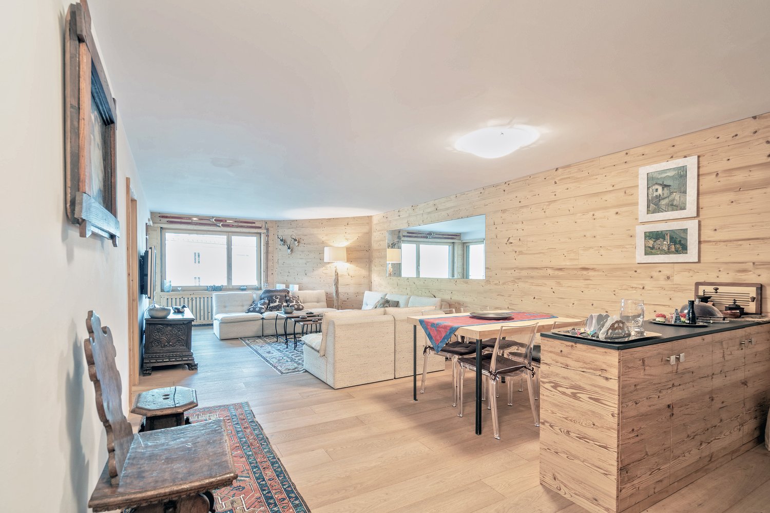 Die exklusive Mietwohnung bietet alles, was Ruhesuchende sich wünschen: Ruhe, Privatsphäre und ein stilvolles Ambiente. Vollständig möbliert und hochwertig eingerichtet, müssen Sie nur Ihre persönlichen Dinge mitbringen - der Rest ist bereits perfekt für Sie vorbereitet. Ideal für anspruchsvolle Mieter, die eine gepflegte Liegenschaft schätzen und Wert auf eine Auszeit in luxuriöser Umgebung legen.Beim Betreten der Wohnung empfängt Sie ein grosszügiger Eingang, der direkten Zugang zu allen Bereichen der Wohnung bietet.Die stilvolle, halboffene Küche mit weissen Fronten ist mit modernsten Geräten und hochwertigen Materialien ausgestattet. Die Küche öffnet sich zu einem weitläufigen Essbereich und einem beeindruckenden Wohnzimmer, das durch grosse Fenster lichtdurchflutet wird. Von hier aus haben Sie direkten Zugang zu einer grossen Terrasse mit Naturstein- und Rasenbereich, die eine unvergleichliche Aussicht auf den See und die umliegenden Berge bietet.Es stehen drei Schlafzimmer zur Verfügung, alle mit einem eigenen luxuriösen Bad ausgestattet, das höchsten Ansprüchen gerecht wird. Eines der Schlafzimmer hat Zugang zur Terrasse. Zusätzlich gibt es ein separates Gäste-Bad, das Komfort und Privatsphäre für Besucher gewährleistet.Die Wohnung besticht durch eine moderne Interpretation von hochwertigen Materialien, die Wärme und Eleganz ausstrahlen. Die Böden sind aus antiker Eiche gefertigt, was für eine gemütliche und zugleich edle Atmosphäre sorgt. Die Badezimmer sind in Naturofloor gehalten, einem innovativen Material, das durch seine natürliche Optik überzeugt. Die Einbauten bestehen aus Fichte-Altholz und verleihen der Wohnung einen rustikalen Charme. Die Steinelemente aus Luserna-Stein setzen stilvolle Akzente und runden das exklusive Design perfekt ab.Es stehen zwei Autoeinstellplätze in der Garage zur Verfügung. Ausserdem bietet die Wohnung praktische Nebenräume, darunter ein Veloraum, ein Skiraum und eine Waschküche.Diese exklusive Wohnung wird vollständig möbliert und eingerichtet angeboten und richtet sich an Mieter, die Diskretion und Ruhe in einem gepflegten Wohnumfeld schätzen. Der Miethorizont beträgt 2 bis 3 Jahre.The exclusive rental apartment offers everything that those seeking relaxing vacation want: tranquillity, privacy and a stylish ambience. As it is fully furnished and equipped to a high standard, all you have to do is bring your personal belongings - the rest is already perfectly prepared for you. Ideal for discerning tenants who appreciate a well-maintained property and value a vacation time in luxurious surroundings.A spacious entrance awaits upon entering that provides direct access to all areas of the apartment.High-quality materials have been used for the stylish, half-open kitchen with white fronts equipped with state-of-the-art appliances. The kitchen opens onto a spacious dining area and an impressive living room. Large windows ensure plenty of light. Direct access is available to the large terrace featuring areas of natural stone and lawn from which unrivalled views can be enjoyed over the lake and surrounding mountains.The apartment has three bedrooms, each of which comes with its own luxurious bathroom that meets the highest standards. The terrace can also be accessed from one of the bedrooms. There is a separate guest bathroom, ensuring comfort and privacy for visitors.The apartment impresses with its modern take on high-quality materials that exude warmth and elegance. The floors are made of antique oak, creating a cosy yet elegant atmosphere. The bathrooms have been finished with Naturofloor, an innovative material that impresses with its natural look. The apartment's fixtures are made of old spruce wood and lend rustic charm. And the elements in Luserna stone set stylish accents and round off the exclusive design perfectly.Two parking spaces are available in the garage. The apartment also comes with further practical rooms, including bike and ski storage rooms and...
