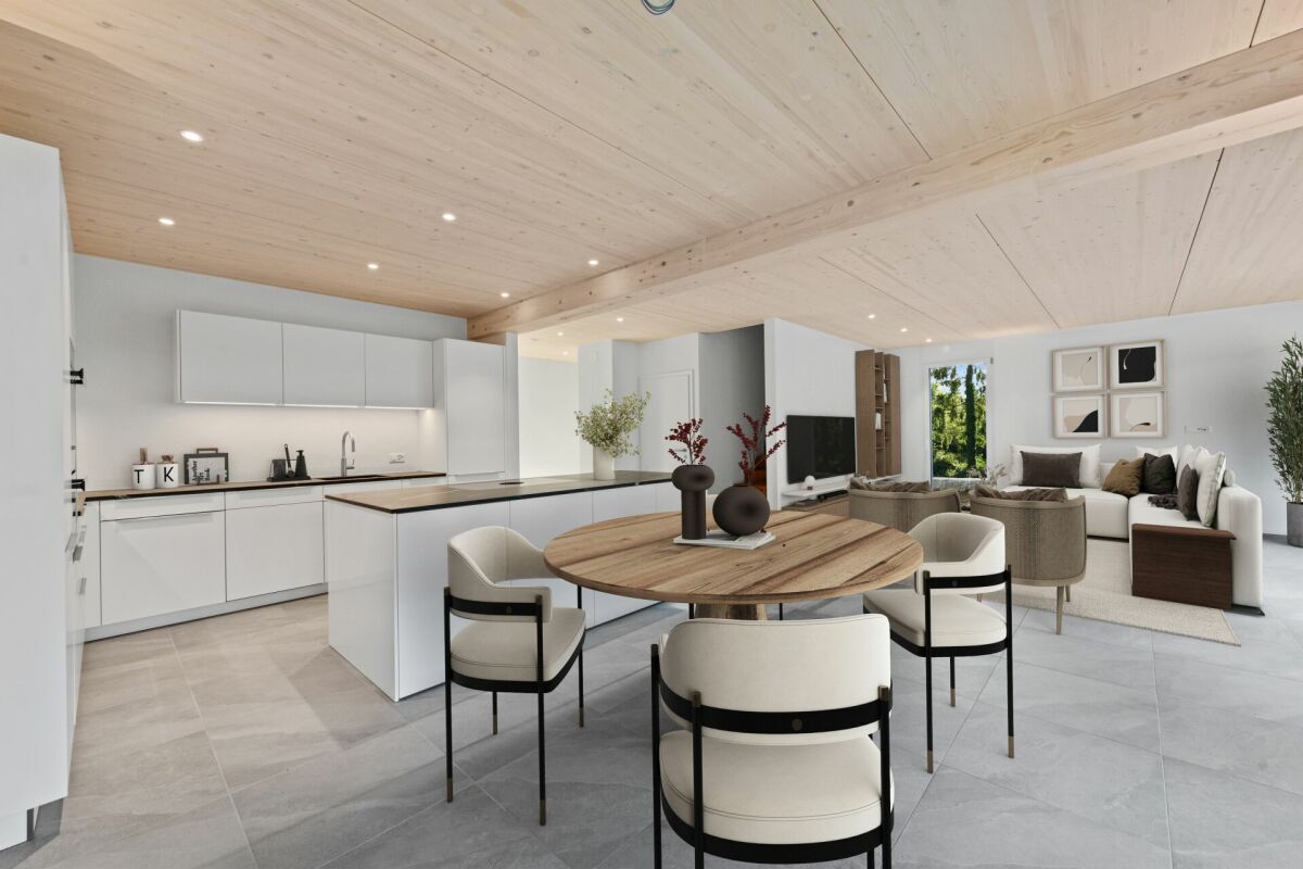 Besuchen Sie uns am Tag der offenen Tür: Samstag, 13. September, von 10.00 bis 12.30 Uhr an der Seehaldenstrasse 15a in Mammern wir freuen uns auf Sie! Diese neue, stilvolle 6.5-Zimmer-Doppelhaushälfte in Mammern TG (6 Minuten von Stein am Rhein entfernt) begeistert mit ca. 80 m² Wohnfläche und knapp 200 m² Garten. Ein echtes Highlight für Singles und Paare, die das Besondere suchen. Ein Zuhause, das moderne Architektur, hochwertige Materialien und eine traumhafte Lage am Untersee perfekt vereint. Das Erdgeschoss entspannt ankommen und wohlfühlen: Bereits der Eingangsbereich überzeugt mit funktionalen Einbauschränken, die dezent Stauraum schaffen. Ein modernes Gäste-WC, sowie ein elegantes Bad mit Badewanne, Doppellavabo und begehbarer Dusche deren Wände stilvoll mit fugenlosem Beton Ciré gestaltet sind sorgen für höchsten Komfort. Ein helles Zimmer bietet flexible Nutzungsmöglichkeiten, sei es als Büro, Gästezimmer oder Hobbyraum. Das Schlafzimmer mit direktem Zugang zu Terrasse und Garten lädt dazu ein, den Tag entspannt im Freien zu beginnen oder ausklingen zu lassen. Der stilvolle Treppenaufgang mit integrierten Wandspots rundet das harmonische Gesamtbild ab und führt ins lichtdurchflutete Obergeschoss. Das Obergeschoss - Zentrum des Lebens: Die offene, lichtdurchflutete Wohnküche begeistert mit hochwertigen Markengeräten, einem stilvollen Cheminée und direktem Zugang zum grosszügigen Balkon mit herrlicher Seesicht. Ein offenes, angrenzendes Reduit sorgt für Ordnung und hält Alltägliches dezent im Hintergrund, unauffällig, funktional und einfach smart. Auf dem Balkon mit Seesicht entstehen unvergessliche Momente im Licht der Abendsonne mit herrlichem Blick auf den Untersee. Hier wird erzählt, gelacht und das Leben in vollen Zügen genossen. Weitere Pluspunkte: Praktischer Disponibelraum. Egal ob Outdoorküche, Atelier oder Hobbyraum, hier gestalten Sie Ihre persönliche Kreativzone. Terrasse und private Gartenfläche. Ein Raum für Ihre grünen Ideen: Kräuter anpflanzen, Blumen pflegen oder einfach die Natur geniessen. Zwei Aussenparkplätze direkt beim Haus. Ruhige, sonnige Lage in Seenähe. Auch der Wald ist in unmittelbarer Nähe perfekt für Spaziergänge, Joggingrunden oder einfach zum Durchatmen in der Natur. Erstbezug in zeitlos-modernem Stil. Ein einzigartiges Zuhause mit Seeblick und Waldsicht. Ruhig gelegen und dennoch bestens erreichbar ideal für alle, die das Besondere suchen und Wert auf hochwertige Architektur, Komfort und eine einmalige Lage legen. Bildmaterial: Ulrike SommerSind Sie neugierig geworden? Dann ergreifen Sie die Chance und sichern Sie sich Ihr neues Zuhause in Mammern. Gerne sende ich Ihnen das ausführliche Exposé zu und stehe Ihnen für weitere Informationen sowie für einen unverbindlichen Besichtigungstermin zur Verfügung. Ich freue mich auf Ihre Kontaktaufnahme! Sie haben selbst eine Immobilie und möchten wissen, was sie wert ist? Erhalten Sie in nur wenigen Minuten eine kostenlose und unverbindliche Richtpreis-Einschätzung bequem online unter: www.lebenswerk.immo/kostenlose-bewertung Schnell, einfach und völlig ohne Verpflichtung.