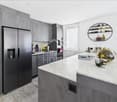 • 3-story modern brick building with large windows, balconies, and landscaped grounds
