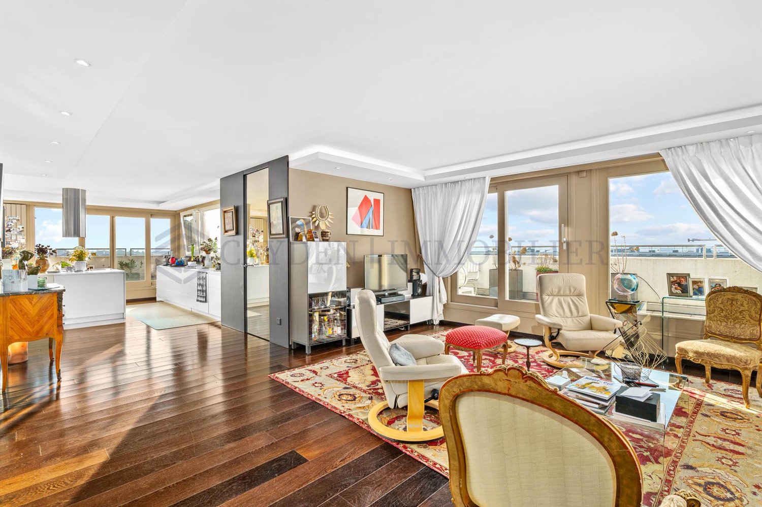 Un bien rare à la vente, élégant et lumineux avec des terrasses à chaque niveau afin de profiter au mieux des extérieurs. Cet attique aux grands et beaux volumes, desservis sur plusieurs niveaux est situé dans une résidence sécurisée et prisée de la commune de Chêne-Bougeries, avec une vue verdoyante sur un parc de plus de 12 hectares !Ce magnifique appartement vous offre une expérience de vie unique sur quatre niveaux, alliant confort contemporain, volumes généreux et vues dégagées sur la verdure.Dès l'entrée, un vestiaire soigné accueille vos invités et deux vastes chambres à coucher sont disponibles sur ce même niveau. Chaque chambre est dotée soit d'une grande salle de bains privative avec sauna et dressing, soit d'une salle de douche à l'italienne. Un WC visiteurs est bien entendu également disponible sur ce niveau.À l'étage supérieur, vous découvrirez un premier vaste séjour baigné de lumière naturelle, prolongé par trois superbes terrasses, parfaites pour profiter du calme et des vues sans vis-à-vis.Un niveau en mezzanine, accessible depuis le séjour, constitue l'espace idéal pour un bureau, un atelier ou une bibliothèque lumineuse, lequel a par ailleurs aussi un accès extérieur.L'étage inférieur promet une ambiance chaleureuse et conviviale !Vous y trouverez une seconde pièce de vie avec cheminée, lové sous un puit de lumière, s'ouvrant sur une cuisine entièrement équipée et agencée. Deux autres terrasses prolongent cet espace, invitant à des moments de détente en extérieur à toute heure de la journée.Les atouts : • Distribution sur 4 niveaux pour garantir l'espace • 79 m2 de terrasses avec vues dégagées sur la verdure • Cheminée, puit de lumière et nombreuses ouvertures • Calme absolu dans un cadre résidentiel recherché tout en étant à proximité du centre-ville Naturellement, deux box dans un garage sécurisé à CHF 100'000.- en sus du prix de vente ainsi qu'une cave, viennent compléter ce bien.Cet appartement aux prestations rares est un véritable coup de coeur pour les amateurs d'espace, de lumière et de nature en ville !Contactez-nous sans tarder pour une visite privée !A rare property for sale, elegant and bright, with terraces on every level to make the most of the outdoors. This spacious attic apartment is located in a secure, sought-after residence in the commune of Chêne-Bougeries, with a green view over a park of more than 12 hectares!This magnificent apartment offers a unique living experience on four levels, combining contemporary comfort, generous volumes and unobstructed views of the greenery.From the entrance, a well-appointed wardrobe welcomes your guests, and two spacious bedrooms are available on the same level. Each bedroom has either a large private bathroom with sauna and dressing room, or a walk-in shower room. A guest toilet is also available on this level.On the upper floor, you'll find first a vast living room bathed in natural light, extended by three superb terraces, perfect for enjoying the calm and unoverlooked views.A mezzanine level, accessible from the living room, provides the ideal space for a bright office, workshop or library, which also has outside access.The lower floor promises a warm and...