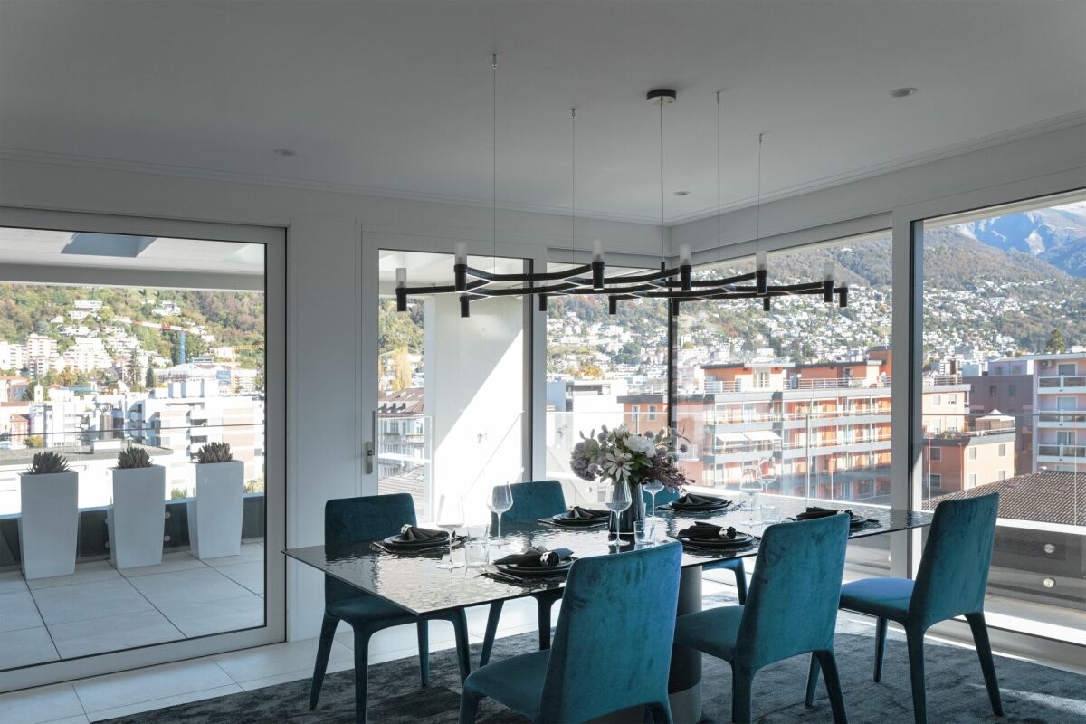 Nel prestigioso contesto residenziale di Muralto, all'interno di una curata residenza immersa in un ampio parco verde, si trova questo splendido attico di alto standing, situato al quinto e ultimo piano, perfetto sia come residenza primaria, che come residenza secondaria. La proprietà, di rara ampiezza e luminosità, è composta da due unità abitative collegate tra loro, offrendo una soluzione abitativa estremamente versatile e adatta a soddisfare esigenze abitative diversificate, garantendo al tempo stesso indipendenza e continuità tra gli spazi.L'unità principale di 3.5 locali si sviluppa intorno a una straordinaria zona giorno concepita come un grande open space, dove la cucina, la zona pranzo e l'ampio soggiorno si fondono in un unico ambiente arioso e accogliente, caratterizzato da grandi aperture vetrate che assicurano una luminosità naturale costante durante tutto l'arco della giornata. La spaziosità degli interni è ulteriormente valorizzata dall'altezza dei soffitti, che raggiunge i 3.3 metri, contribuendo a creare un'atmosfera di ampio respiro. La zona living si apre direttamente su una grande terrazza panoramica, dalla quale si gode una magnifica vista sulla città di Locarno, sul Lago Maggiore e sul paesaggio circostante, regalando una dimensione di tranquillità e bellezza che raramente si ritrova in contesti urbani.La zona notte dell'attico è composta da una camera padronale di notevole dimensione, arricchita da ampie armadiature donando equilibrio tra comfort e privacy, affiancata da ulteriori camere da letto, ideali per una famiglia o per ospiti, e da più bagni finestrati, completi e ben distribuiti.Adiacente all'unità principale, ma con ingresso indipendente, si sviluppa la seconda unità abitativa, un appartamento di 2.5 locali che offre ulteriore flessibilità. Questo spazio si presta perfettamente come appartamento per ospiti, per personale di servizio o come investimento a reddito, essendo dotato di cucina, zona giorno, camera da letto e bagno, mantenendo la stessa attenzione al dettaglio e allo stile del resto della proprietà. La presenza del collegamento interno permette un utilizzo integrato dell'intero spazio, pur preservando la possibilità di un utilizzo separato.La proprietà è dotata di un impianto di climatizzazione che garantisce il massimo comfort in ogni stagione e viene completata da tre comodi posti auto situati nell'autorimessa della residenza, oltre a due cantine private che offrono spazio aggiuntivo per deposito e organizzazione così come una comoda lavanderia privata. La residenza, curata e ben abitata, è immersa in un ambiente tranquillo e riservato, circondato dal verde, ma a due minuti a piedi dalla stazione di Locarno.Caratteristiche: • Attico con vista panoramica sulla città e sul Lago Maggiore • Composto da 2 appartamenti • Locali con ampi spazi luminosi • Impianto AC • 3 posteggi in autorimessa • 2 cantine • Residenza primaria o secondaria