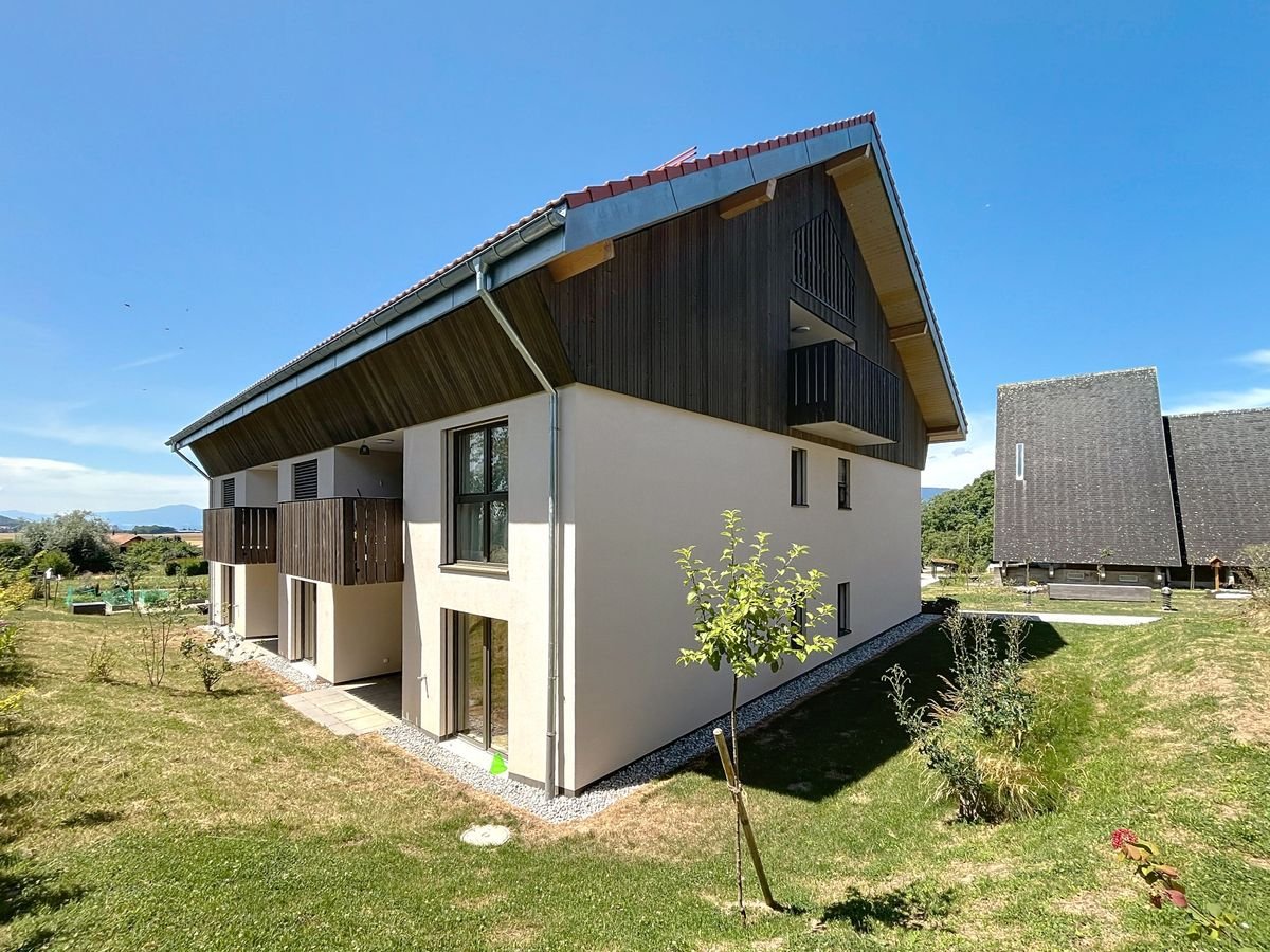 Très beau duplex de 120m2 habitables situé au dernier étage d'un petit immeuble neuf, situé à 17.5 Montbrelloz/ commune d'Estavayer.Ce bel appartement accessible avec un ascenseur fait partie de l'ensemble du développement Flore et Sens.Sa composition est la suivante :Un grand séjour et cuisine ouverte de plus de 40m2 , deux chambres de 16,5m2 et 17,5m2 et une salle d'eau avec baignoire, un balcon terrasse semi couvert.Au 1er étage de ce beau duplex, une chambre parentale de 23m2 et une salle d'eau avec douche. A disposition, une cave de 11,2m2 et une ou deux places de parc en supplément. L'immeuble est aux normes Minergie, chauffage par pompe à chaleur et panneaux photovoltaïques. • Ce projet respectueux de l'environnement répond aux normes Minergie. Les bâtiments disposent d'une production de chaleur par sondes géothermiques, de panneaux solaires photovoltaïques pour optimiser la consommation d'électricité et d'un système de récupération des eaux de pluie pour l'arrosage des espaces extérieurs. • Du verger à l'aire de jeux, de l'hôtel à insectes en passant par un potager commun, la copropriété favorise le partage et permet à chacun et chacune de participer à la durabilité de son environnement immédiat. La mobilité douce est également favorisée pour les trajets du quotidien grâce à de nombreuses places de parc pour vélos. Données techniques : • Minergie • Chauffage au sol • Panneau photovoltaique • Pompe à chaleur • Fenêtres triple vitrage • Stores automatisés • FIbre optique • Carrelage • Parquet en chêne • Salle de bain tout confort: revêtement de sol en carrelage, revêtement mural en faïence, équipement complet • Cuisine agencée: plan de travail en granit, évier inox, réfrigérateur-congélateur, lave-vaisselle, four, plaques vitrocéramiques Commodités : • Boîte à colis connectée • Possibilité d'installer une borne de recharge individuelle dans le parking souterrain • Des aménagements extérieurs développés en partenariat avec un paysagiste spécialisé pour favoriser la biodiversité • Nombreuses places de parc vélos couvertes pour une mobilité douce • Un contracting énergétique pour assurer une installation performante et une maintenance durable des installations techniques. Place de parc : • Place de parc dans garage souterrain CHF 30'000.- en supplément pour chaque place avec pré-installation pour l'installation de borne électrique Extérieur : • Potager privatif et serre commune • Place de jeu, hôtel à insectes (commun)