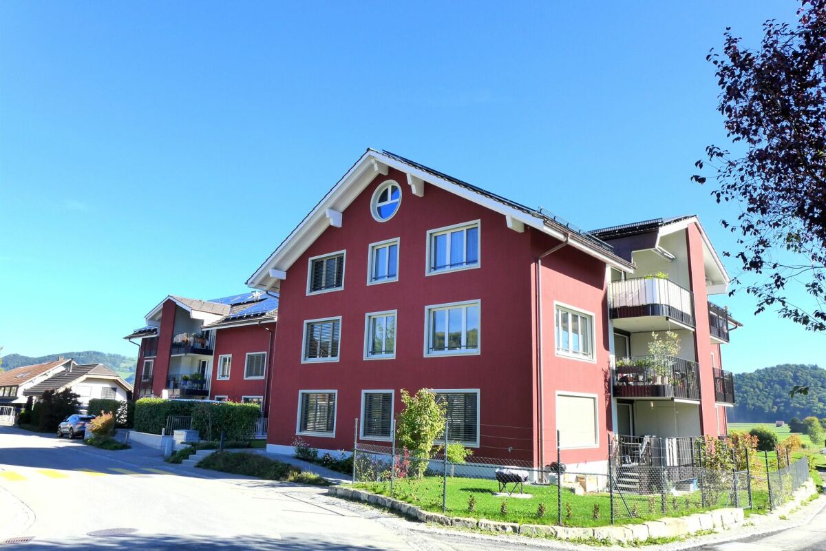An dieser traumhaften Aussichtslage umgeben von Landwirtschaftsland und nahe vom Zentrum mit Bahnhof, Arzt, Kultur und Einkaufsmöglichkeiten angrenzend an die Gürbe wurden im Jahre 2023 2 Mehrfamilienhäuser mit je 6 Eigentumswohnungen fertiggestellt und bezogen. Bei der Projektierung der Überbauung wurde bei der Ausrichtung der Häuser der Besonnung und Aussichtslage besonderes Augenmerk geschenkt. So entstanden zwei eigenständige Häuser mit je sechs Wohnungen, die zusammen eine Miteigentümergemeinschaft bilden. Die aus Thun zugezogenen Eigentümer der zum Verkauf stehenden Dachwohnung mit Galerie haben sich entschieden, wieder näher zur Stadt zu ziehen. Ein Glücksfall für Sie als Liebhaber moderner Architektur. Alles ist bereits ausgesucht und fertig verbaut. Die perfekt ausgebaute Wohnung glänzt mit hochwertigen Materialien, die mit viel Liebe zum Detail ausgewählt und aufeinander abgestimmt wurden. Die Dachwohnung ist nach Süden und Westen orientiert, ganztägig besonnt mit Aussicht auf die majestätischen Berner Alpen.Die Wohnung verfügt über eine eigene abschliessbare Waschküche mit Secomat sowie einen eigenen Kellerraum.Die Überbauung wird mit einer Wärmepumpe beheizt, der eigene Strom wird mittels einer Photovoltaikanlage produziert, das relativ harte Wasser mit einer modernen Enthärtungsanlage entkalkt.Zusätzlich können zwei Einstellhallenplätze erworben werden.Gerne senden wir Ihnen die Dokumentation mit vielen weiteren Informationen zu. Füllen Sie dazu das Kontaktformular rechts auf der Homepage www.amacherimmobilien.ch möglichst vollständig aus.