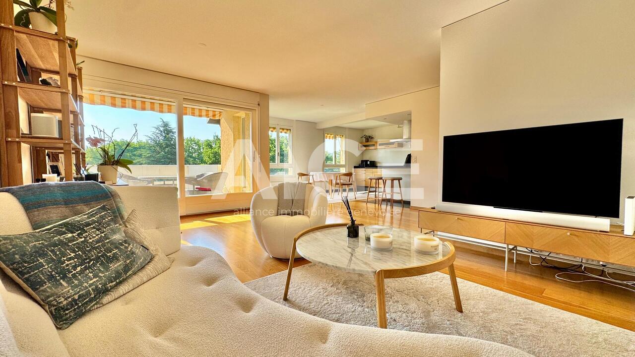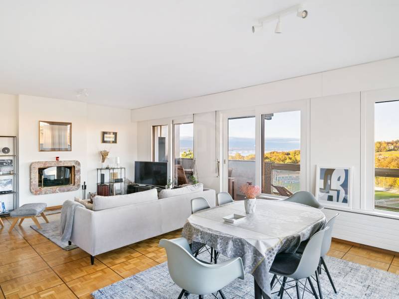 Situé au coeur de la prestigieuse commune de Cologny, cet appartement remarquable bénéficie d'un emplacement privilégié offrant une vue spectaculaire sur le lac Léman et les massifs environnants.Niché au sein d'une résidence de standing, ce bien a récemment été entièrement rénové avec un soin particulier, alliant élégance contemporaine et matériaux de haute qualité. Les volumes généreux et la luminosité omniprésente sont sublimés par de vastes terrasses de près de 160m2 à la vue la et aux perspectives grandioses, entourées de verdure et de sérénité.Les prestations haut de gamme et les finitions raffinées assurent un confort de vie optimal dans un environnement à la fois paisible et exclusif.Distribution intérieure: • Hall d'entrée accueillant avec de nombreux rangements • Spacieux salon avec cheminée, ouvert sur une salle à manger élégante • Grande cuisine entièrement équipée, pensée pour les gastronomes avec accès à la terrasse • Suite parentale avec deux dressings et salle de bain privative avec accès à la terrasse • Trois chambres à coucher, chacune avec sa salle de bain en suite avec accès à leur terrasses • WC visiteurs • Buanderie fonctionnelle • Nombreux rangements intégrés dans tout l'appartement • Terrasses exceptionnelles de près de 160m2 avec vue lac sur l'ensemble des pièces de l'appartement Annexes: • Local technique • Box fermé pour trois véhicules avec espace de rangement attenant Im Herzen der renommierten Gemeinde Cologny gelegen, profitiert diese bemerkenswerte Wohnung von einer privilegierten Lage, die einen spektakulären Blick auf den Genfer See und die umliegenden Bergmassive bietet.Innerhalb einer luxuriösen Residenz gelegen, wurde diese Immobilie kürzlich mit besonderer Sorgfalt vollständig renoviert, wobei zeitgenössische Eleganz und hochwertige Materialien kombiniert wurden. Die großzügigen Volumen und die allgegenwärtige Helligkeit werden durch die weitläufigen Terrassen von fast 160m2 mit Blick und grandiosen Perspektiven sublimiert, die von Grün und Gelassenheit umgeben sind.Die hochwertigen Leistungen und die raffinierten Ausführungen gewährleisten einen optimalen Lebenskomfort in einer zugleich ruhigen und exklusiven Umgebung.Innere Aufteilung: • Einladende Eingangshalle mit viel Stauraum • Räumiges Wohnzimmer mit Kamin, offen zu einem eleganten Esszimmer • Große, voll ausgestattete Küche, gedacht für Gourmets mit Zugang zur Terrasse • Elternsuite mit zwei begehbaren Kleiderschränken und eigenem Bad mit Zugang zur Terrasse • Drei Schlafzimmer, jedes mit eigenem Bad en suite mit Zugang zu ihren Terrassen • Besucher-WC • Funktionale Waschküche • Viele Stauräume in der ganzen Wohnung integriert • Außergewöhnliche Terrassen von fast 160m2 mit Seeblick von allen Räumen der Wohnung aus Anlagen: • Technikraum • Geschlossene Box für drei Fahrzeuge mit angrenzendem Stauraum Located in the heart of the prestigious commune of Cologny, this remarkable apartment enjoys a privileged location offering spectacular views of Lake Geneva and the surrounding massifs.Nested within a luxury residence, this property has recently been completely renovated with particular care, combining contemporary elegance and high-quality materials. The generous volumes and omnipresent luminosity are sublimated by vast terraces of almost 160m2 with views la and grandiose perspectives, surrounded by greenery and serenity.The top-of-the-range services and refined finishes ensure optimal living comfort in an environment that is both peaceful and exclusive.Interior distribution: • Welcoming entrance hall with plenty of storage space • Spacious living room with fireplace, open to an elegant dining room • Large, fully equipped kitchen, thought for gourmets with access to the...