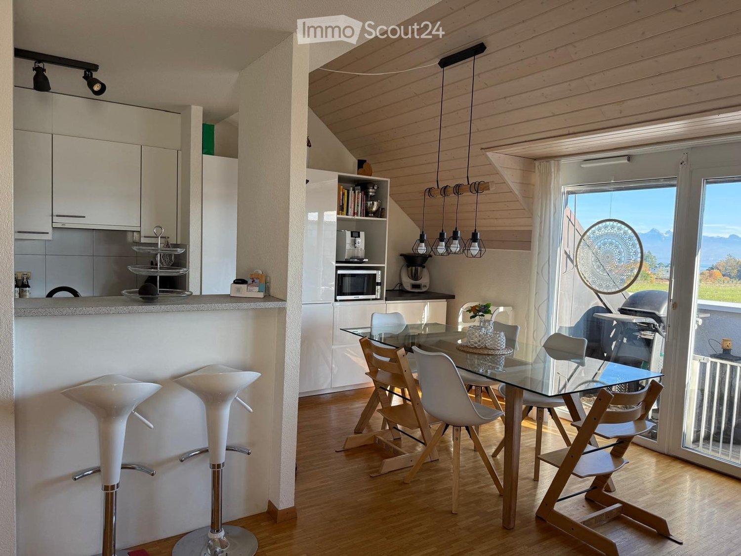 Découvrez ce magnifique appartement de 5.5 pièces de 168 m² situé au 3ème étage d'un immeuble moderne avec ascenseur à Essertines-sur-Rolle. Cet appartement lumineux offre un cadre de vie exceptionnel dans un environnement calme et ensoleillé. • Salon spacieux, placard encastré pour rangement : Espace de vie convivial avec poutres apparentes en bois donnant accès au balcon terrasse avec vue panoramique. • Cuisine ouverte moderne : Entièrement équipée, placards contemporains et velux avec ouverture à projection apportant une luminosité naturelle et un agrandissement de l'espace. • Chambres confortables : 2 grandes chambres avec parquet et poutres apparentes. • Terrasse avec aménagement en caillebottis : magnifique vue panoramique sur les montagnes et le paysage rural environnant. • 1 salle de bains complète avec baignoire, WC, lave-linge et sèche-linge sans restriction d'utilisation. • 1 salle de bains visiteur avec WC • 1 réduit à l'entrée permettant de réaliser de nombreux rangements sur 2m2. • 1 cave privée complète avec rangements inclus (placard et commode) complètent ce bien. • Place de parc à disposition pour les visiteurs. Situation privilégiée : À seulement 3 minutes à pied de l'école et UAPE (1P-4P) et de l'arrêt de bus "Essertines-sur-Rolle Village". Place de jeux, table de ping-pong et terrain de foot à 3min à pieds. 5min de Gimel avec commerces (épiceries, boulangerie, fromagerie, Denner) et école (1P-8P). 10min de Rolle, 30min de Lausanne, 30min de Genève. Cet appartement combine parfaitement le charme rustique des poutres apparentes avec le confort moderne, offrant un cadre de vie paisible avec des vues exceptionnelles sur la campagne. Disponible dès le 15 février 2026.Prestations complémentaires Garage avec télécommande pour CHF 160,-/mois. L'appartement est accessible aux personnes à mobilité réduite et accueille les animaux domestiques. Idéal pour les familles avec enfants.Location en direct avec le propriétaire, pas de gérance.