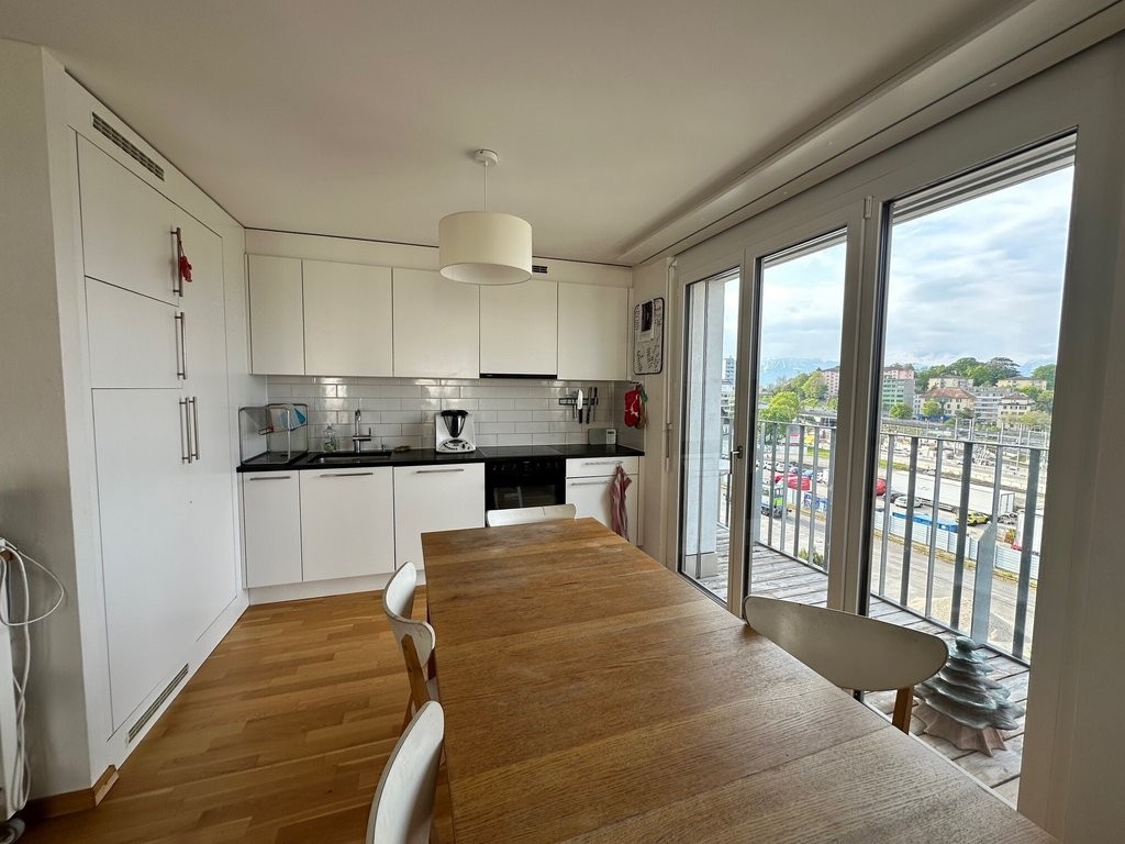 Disponible de suite, ce magnifique appartement de 140 m2 se situe dans un quartier prisé des hauteurs de Lausanne (Pont de Chailly), au 9è étage d'une luxueuse résidence sécurisée, au milieu d'un parc privé à l'abri de toute nuisance. Il bénéficie de très beaux volumes, dont une grande pièce à vivre et un balcon avec une vue spectaculaire sur les Alpes et le Lac Léman. Il dispose de deux salles de bains (avec un raccordement pour lave-linge), d'un hall avec des armoires intégrées, de trois chambres à coucher et d'une cuisine entièrement rénovée. Il s'accompagne par ailleurs d'une cave et d'une place de parc intérieure. Commerces, écoles, bus à proximité.Description:Hall d'entrée avec armoires muralesSéjour / salle à manger avec accès au balcon Cuisine (équipements neufs)Trois chambres à coucher avec placards intégrésUne salle de bains/WC Une salle de douche/WC Balcon Place de parc intérieure privée Buanderie et séchoir collectifCave privéeUne place de parking intérieure est disponible avec cet objet pour un loyer de CHF 195.--/mois. Diese wunderschöne Wohnung von 140 m2 ist ab sofort verfügbar. Sie befindet sich in einem beliebten Viertel oberhalb von Lausanne (Pont de Chailly), im 9. Stock einer luxuriösen, gesicherten Residenz, inmitten eines privaten Parks, der vor jeglicher Belästigung geschützt ist. Sie verfügt über sehr schöne Volumen, darunter ein großes Wohnzimmer und einen Balkon mit einer spektakulären Aussicht auf die Alpen und den Genfer See. Es verfügt über zwei Badezimmer (mit Waschmaschinenanschluss), eine Halle mit Einbauschränken, drei Schlafzimmer und eine komplett renovierte Küche. Zur Wohnung gehören außerdem ein Keller und ein Innenparkplatz. Geschäfte, Schulen und Busse befinden sich in der Nähe.Beschreibung:Eingangshalle mit WandschränkenWohn-/Esszimmer mit Zugang zum BalkonKüche (neue Geräte)Drei Schlafzimmer mit EinbauschränkenEin Badezimmer/WCEin Duschraum/WCBalkonPrivater InnenparkplatzGemeinsame Waschküche und TrockenraumPrivater KellerEin Innenparkplatz ist mit diesem Objekt für eine Miete von CHF 195.--/Monat verfügbar. Available immediately, this magnificent 140 m2 apartment is located in a sought-after neighborhood in the heights of Lausanne (Pont de Chailly), on the 9th floor of a luxurious, secure residence, in the middle of a private park, protected from any nuisance. It boasts spacious accommodation, including a large living room and a balcony with spectacular views of the Alps and Lake Geneva. It features two bathrooms (with washing machine connection), a hall with built-in wardrobes, three bedrooms and a fully renovated kitchen. It also comes with a cellar and an indoor parking space. Shops, schools and buses nearby.Description:Entrance hall with wall cupboardsLiving/dining room with access to balconyKitchen (new equipment)Three bedrooms with built-in closetsBathroom/WCShower room/WCBalconyPrivate indoor parking spaceShared laundry and drying roomPrivate cellarAn indoor parking space is available with this property for a rent of CHF 195.--/month.