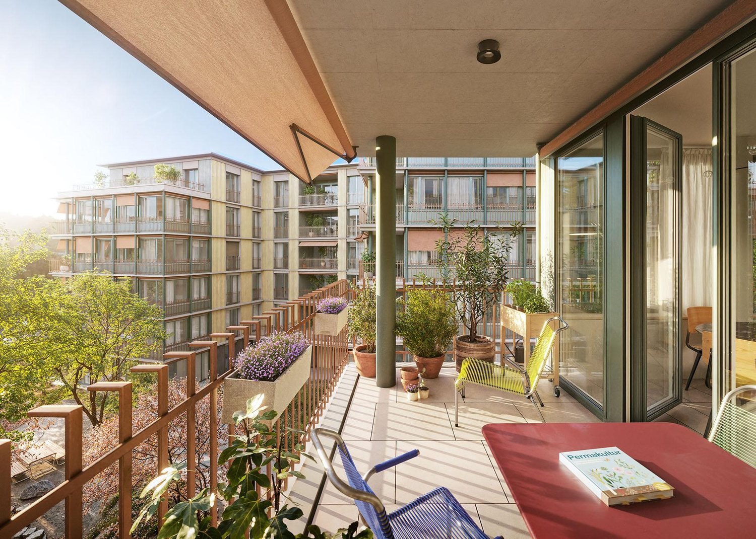 English below Attraktive Attika-Neubauwohnung mit tollem Grundriss im Erstbezug. 2 Grosse Terrassen • Nachhaltiger Holzbau mit grosser Solaranlage und Erdsondenheizung, Kühlung im Sommer (Freecooling) • Küche mit hochwertigen Geräten und daneben liegendem Reduit/Vorratsraum, Wohn- und Essbereich je mit Ausgang zu einer der beiden Terrassen • Eichenparkett und Holzdecken natur in allen Wohn- und Schlafräumen • Dusche und separates WC mit keramischen Boden- und Wandbelägen; eigene Waschmaschine und Tumbler • Verkehrsberuhigte Lage, kinderfreundlich, biodiverse Umgebungsgestaltung, Mobility-Fahrzeug und Lastenvelos auf Grundstück; sicherer Schulweg zu Fuss, Kindergarten und Schulen in unmittelbarer Nachbarschaft • Einkaufsmöglichkeiten (Coop, Migros, Denner, Apotheken etc.), Bank, Post und Anbindung an Trams 7 und 9 sowie Busse 62 und 75 am Schwamendingerplatz (8 min Fussweg) • Schwimmbad Auhof mit geheiztem Aussenpool in unmittelbarer Nähe, Überlandpark und Naherholungsgebiet in Gehdistanz • Wohngemeinschaften möglich Attractive new Penthouse apartment with a great floor plan in brand-new building, first-time occupancy. 2 Large terraces • Sustainable timber construction with large solar system and geothermal heating, cooling in summer (free cooling) • Kitchen with high-quality appliances and adjacent storage room, living and dining areas each with access to one of the two terraces • Oak parquet flooring and natural wood ceilings in all living rooms and bedrooms • Shower and separate toilet with ceramic floor and wall coverings,; own washing machine and dryer • Traffic-calmed location, child-friendly, biodiverse landscaping, Mobility vehicle and cargo bikes on the property; safe walking route to school. Kindergarten and schools in the immediate vicinity • Shopping facilities (Coop, Migros, Denner, pharmacies, etc.), bank, post office, and trams 7 and 9 as well as buses 62 and 75 at Schwamendingerplatz (8 min walk) • Auhof swimming pool with heated outdoor pool in the immediate vicinity, Überlandpark and local recreation area within walking distance • Shared living arrangements possible