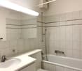 • Bathroom: bathtub, faucet, tiled wall, tiled floor, toilet in adjacent room
