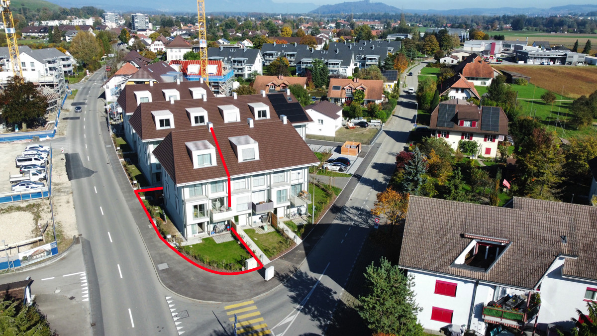 Zwischen Solothurn und Burgdorf entsteht am Dahlienweg 3 in Bätterkinden ein modernes 3-Familienhaus, das ländliche Ruhe mit urbaner Nähe vereint. Hier wohnen Sie naturnah, in einer charmanten Dorfgemeinde, und erreichen doch in wenigen Minuten Bern oder Solothurn – ideal für Menschen, die das Beste aus beiden Welten suchen.Das Wohnhaus wird harmonisch in die Umgebung integriert – direkt angrenzend fliesst das idyllische Schachenbächli, das dem Ort eine besondere Atmosphäre verleiht. Der Zugang erfolgt über den privaten Dahlienweg, ein ruhiger Weg mit Wegrecht. Sämtliche Wohnungen sowie das Untergeschoss sind barrierefrei über das Treppenhaus mit Lift erschlossen.Drei Carports, vier offene Stellplätze und praktische Veloboxen stehen zur Verfügung. Alle Parkplätze sind mit Anschlüssen für E-Ladestationen ausgestattet. Der Strom der Photovoltaikanlage auf dem Dach kann direkt von den Eigentümern genutzt werden – dank integriertem ZEV (Zusammenschluss zum Eigenverbrauch). Das ist nicht nur nachhaltig, sondern auch kosteneffizient.Die gut gedämmte Gebäudehülle reduziert den Energieverbrauch spürbar. Beheizt wird das Haus umweltfreundlich über eine Luft-Wasser-Wärmepumpe, was tiefe Betriebskosten und ein gutes Gewissen garantiert.Die drei Eigentumswohnungen überzeugen durch grosszügige Grundrisse, hohe Ausbaustandards und lichtdurchflutete Räume dank grosser Fensterfronten. Jede Wohnung verfügt über eine gedeckte Terrasse von rund 92 m², die den privaten Innenraum elegant erweitert.Die Erdgeschosswohnung bietet zusätzlich einen grosszügigen privaten Gartenbereich mit vielfältigen Nutzungsmöglichkeiten. Ein separater gemeinschaftlicher Aufenthaltsbereich im Garten steht allen Bewohnern offen und lädt zum Verweilen und Begegnen ein.Im Untergeschoss befinden sich private Kellerabteile sowie separate Trocknungsräume – praktisch, komfortabel und funktional.