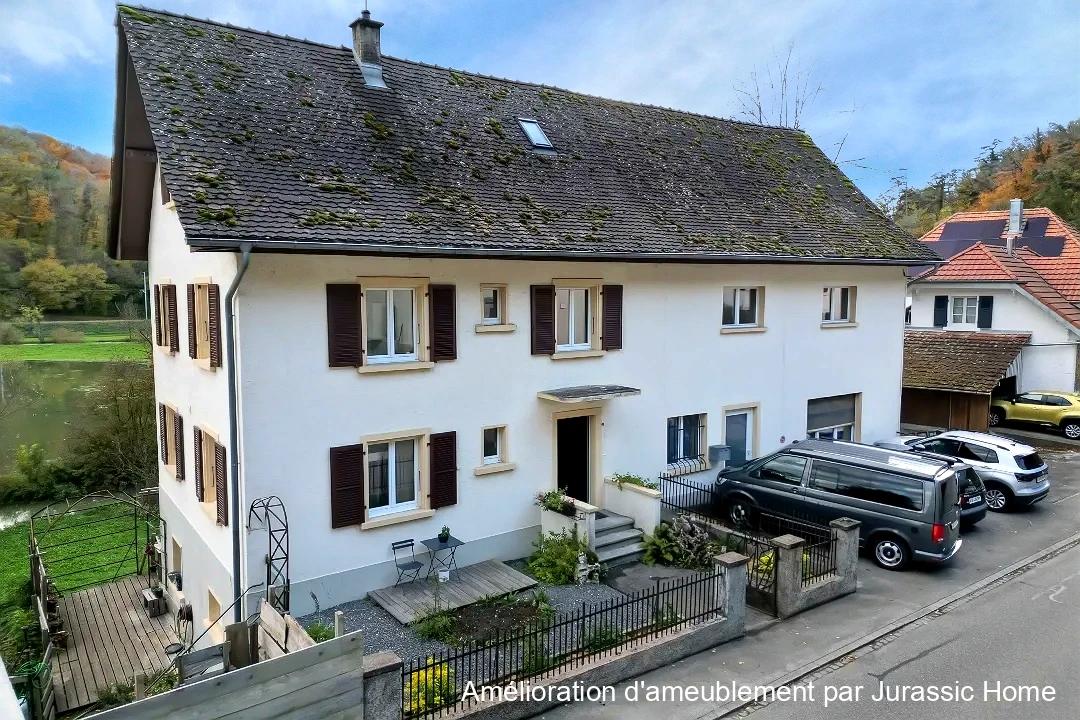 Französisch:Cette superbe villa d'époque de 2 pièces a été complètement rénovée de 2016 à 2018 et se trouve sur une très grande parcelle verte et joliment arborée de 1'421 m².Idéalement située, elle est proche de la gare, du village et à proximité de la nature. Son orientation plein sud lui confère un ensoleillement maximal tout au long de la journée.Dès l'entrée, vous serez charmé par une bâtisse rénovée avec goût, respectant les matériaux d'époque qui ont été conservés, tels que certains planchers, plafonds et moulures, ainsi que les escaliers en bois.La disposition de la villa est la suivante :Au rez-de-chaussée : un joli hall d'entrée, une grande pièce pouvant faire office de salon, une seconde pièce utilisable comme salle de lecture, chambre ou bureau, une cuisine ouverte sur la salle à manger, une chambre à coucher avec un mur en pierre apparente, une salle de bain avec douche italienne et WC, ainsi qu'un WC visiteur séparé. L'accès à la terrasse et au jardin se fait par l'arrière de la maison.A l'étage : trois pièces pouvant servir de chambres à coucher, dont une avec un poêle suédois, un grand salon ou salle de réception, une cuisine agencée, une salle de bain avec baignoire et un balcon.Les combles sont aménageables et la toiture est en bon état.Une annexe à la maison, comprenant la partie technique, se situe à l'arrière de la villa, tout comme une terrasse couverte.L'ensemble de la propriété est entièrement clôturé, offrant ainsi une intimité et une sécurité accrues.Une opportunité rare pour les amateurs de charme et d'authenticité, dans un cadre idyllique à Vendlincourt. Deutsch:Diese prächtige Altbauvilla mit 2 Zimmern wurde zwischen 2016 und 2018 vollständig renoviert und befindet sich auf einem sehr großen, grünen und schön bepflanzten Grundstück von 1'421 m².Ideal gelegen, befindet sie sich in der Nähe des Bahnhofs, des Dorfes und der Natur. Ihre Südausrichtung sorgt für maximale Sonneneinstrahlung den ganzen Tag über.Schon beim Betreten werden Sie von einem geschmackvoll renovierten Gebäude begeistert sein, das den Charme der ursprünglichen Materialien bewahrt hat, darunter einige Holzböden, Decken, Stuckverzierungen und Holztreppen.Die Villa ist wie folgt aufgeteilt:Im Erdgeschoss: ein hübscher Eingangsbereich, ein großes Zimmer als Wohnzimmer, ein weiteres Zimmer, das als Lesezimmer, Schlafzimmer oder Büro genutzt werden kann, eine offene Küche mit Essbereich, ein Schlafzimmer mit einer schönen Natursteinwand, ein Badezimmer mit italienischer Dusche und WC sowie ein separates Gäste-WC. Der Zugang zur Terrasse und zum Garten erfolgt über die Rückseite des Hauses.Im Obergeschoss: drei Zimmer, die als Schlafzimmer genutzt werden können, eines davon mit einem schwedischen Ofen, ein großes Wohnzimmer oder Empfangsraum, eine ausgestattete Küche, ein Badezimmer mit Badewanne und ein Balkon.Der Dachboden ist ausbaubar und das Dach ist in gutem Zustand.Ein Anbau mit Technikraum befindet sich auf der Rückseite der Villa, ebenso wie eine überdachte Terrasse.Das gesamte Grundstück ist komplett eingezäunt und bietet somit erhöhte Privatsphäre und Sicherheit.Eine seltene Gelegenheit für Liebhaber von Charme und Authentizität in einer idyllischen Umgebung in Vendlincourt. English:This magnificent period villa with 2 rooms was completely renovated between 2016 and 2018 and is set on a very large, green, and beautifully landscaped plot of 1,421 m².Ideally located, it is close to the train station, the village, and nature. Its south-facing orientation ensures maximum sunlight throughout the day.Upon entering, you will be charmed by a tastefully renovated building that has preserved its original materials, including some wooden floors, ceilings, moldings, and wooden staircases.The villa is arranged as follows:On the ground floor: a lovely entrance hall, a large room that can serve as a living room, a second room that can be used as a reading room, bedroom, or office, an open kitchen with a dining area, a bedroom with a beautiful exposed stone wall, a bathroom with an Italian-style shower and WC, as well as a separate guest WC. Access to the terrace and garden is from the rear of the house.On the upper floor: three rooms that can be used as bedrooms, one of which has a Swedish stove, a large living or reception room, a fitted kitchen, a bathroom with a bathtub, and a balcony.The attic is convertible, and the roof is in good condition.An annex with the technical area is located at the back of the villa, along with a covered terrace.The entire property is fully fenced, offering increased privacy and security.A rare opportunity for lovers of charm and authenticity in an idyllic setting in Vendlincourt. Détails des pièces • Séjour : 2 • Buanderie privée • Terrasse • Balcon | Loggia • Cave | Cellier • Salle à manger • Hall d'entrée : 2 • Local technique • Cuisine avec coin repas : 2 Chambres • Chambre double / parentale : 5 Salles d'eau • Total WC : 3 • Salle de bain : 1 • Salle de douche : 1 Environnement • Calme | Tranquille • Campagne • Village Vue • Dégagée • Panoramique Exposition • Est Proximité • Gare • Transports publics Extérieur • Aménagé • Jardin Intérieur • Animaux bienvenus • Cuisine équipée • Lave linge • Sèche linge Equipement technique Buanderie équipée Oui Chauffage principal Mazout Lave-vaisselle Oui
