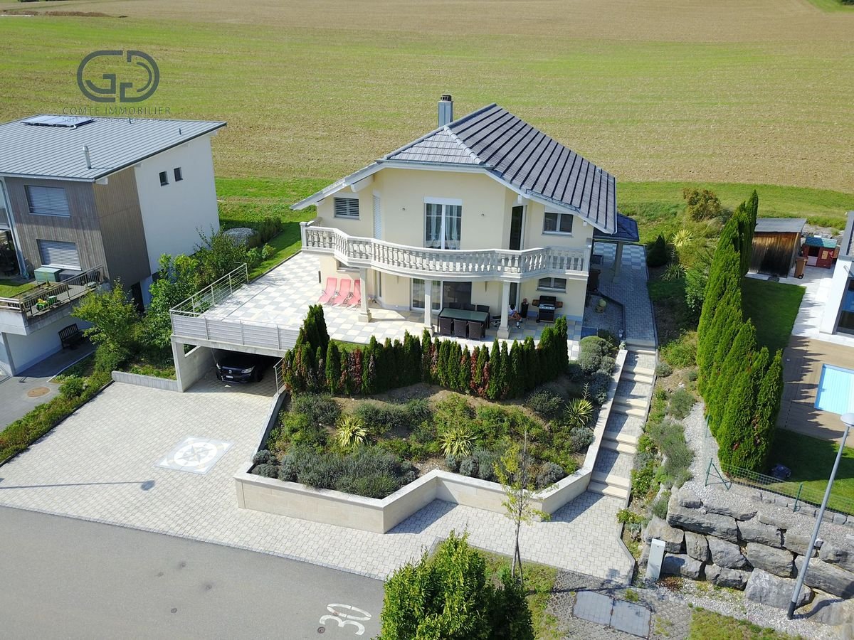 Nichée dans un quartier paisible et recherché de Delémont, en bordure de zone agricole et au bout d'une impasse tranquille, cette villa individuelle offre un cadre de vie privilégié, alliant vue panoramique sur la vallée, volumes généreux et fort potentiel d'aménagement. Idéale pour une famille ou une personne exerçant une activité indépendante, elle propose de nombreuses possibilités, notamment la création d'un logement indépendant ou d'un espace professionnel dans la partie inférieure du bâtiment.Avec une surface habitable d'environ 420 m² sur une parcelle de 681 m², cette propriété se distingue par ses grands volumes.Sous-solLe niveau inférieur accueille deux chambres, une salle d'eau, ainsi qu'une cave, une cave à vin, une buanderie, un local de stockage et un garage. Cet espace peut être aisément réaménagé en logement indépendant, en bureau professionnel ou en cabinet, selon les besoins du futur propriétaire.Rez-de-chausséeL'espace de jour se compose d'une entrée accueillante, d'un bureau pouvant également servir de chambre d'amis, d'une salle d'eau, et d'un vaste salon - salle à manger agrémenté d'une cheminée. De grandes baies vitrées baignent la pièce de lumière et s'ouvrent sur une terrasse ensoleillée, offrant une vue dégagée sur la ville.Premier étageLa partie nuit se distingue par ses trois chambres spacieuses, une salle de bains avec douche, ainsi qu'une suite parentale complète comprenant une chambre lumineuse, un dressing et une salle de bains privative avec douche. L'agencement et la taille des pièces offrent à chacun un confort optimal et une belle intimité.ComblesLes combles accessibles constituent un espace de rangement supplémentaire, idéal pour stocker ou envisager un futur aménagement selon les besoins.Extérieurs et environnementLe terrain de 681 m², joliment aménagé, offre un bel espace de verdure autour de la maison. L'orientation et l'implantation en bordure de zone agricole garantissent tranquillité et intimité, tout en restant proche du centre-ville de Delémont et de ses commodités.Une opportunité rare à saisirProposée au prix de CHF 1'2140'000.-, cette propriété disponible immédiatement offre un rapport qualité / surface exceptionnel pour le secteur.Les offres sérieuses seront étudiées avec attention, et une vente rapide est encouragée.Cette villa combine emplacement privilégié, volume, flexibilité et potentiel - une opportunité rare pour qui souhaite s'établir dans un cadre serein et verdoyant tout en restant proche du coeur de Delémont.Contactez-nous sans tarder pour organiser une visite et saisir cette occasion unique.