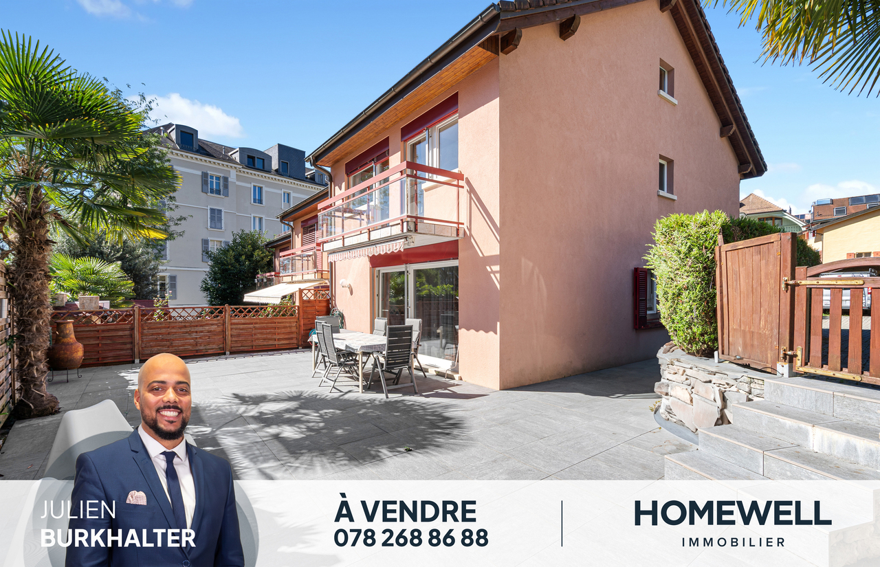 Située à Clarens, à seulement quelques pas du lac Léman et de la célèbre promenade des quais de Montreux, cette maison contiguë allie confort moderne, charme et cadre de vie exceptionnel. Implantée dans un quartier résidentiel paisible, elle profite d'une atmosphère sereine tout en étant proche de toutes les commodités, des écoles et des transports. La maison séduit par sa belle luminosité, ses volumes bien pensés et ses aménagements de qualité. Grâce à ses rénovations régulières, elle est prête à accueillir ses futurs propriétaires dans les meilleures conditions. Elle offre également un potentiel rare grâce à ses combles et à ses surfaces en sous-sol, permettant d'imaginer facilement de nouveaux espaces de vie, selon les envies ou les besoins de la famille. Sa grande terrasse d'environ 240 m², qui entoure la maison : un lieu idéal pour créer plusieurs zones de détente, partager des moments conviviaux.Cette maison conviendra aussi bien à une famille qu'à des personnes recherchant un cadre de vie harmonieux, modulable et proche de la nature, tout en restant au coeur d'une région dynamique et recherchée.Trois places de parc extérieures (en sus du prix de vente) viennent compléter ce bien rare à la vente.Ne manquez pas cette opportunité, contactez-nous pour organiser une visite au 078 268 86 88 ou par e-mail à julien.burkhalter@homewell.ch