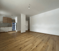• Wooden floor, large sliding glass doors leading to balcony, kitchen area with counters, open plan