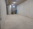 • tiled floor, concrete ceiling, two red garage doors
