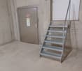 • Empty room with wooden floor and white walls. There is an exit on the right side.
