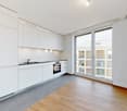 • empty room, balcony, wooden floors, white walls, sliding glass doors