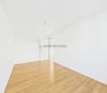 • Empty room with wooden floor, white walls, and large windows with balcony