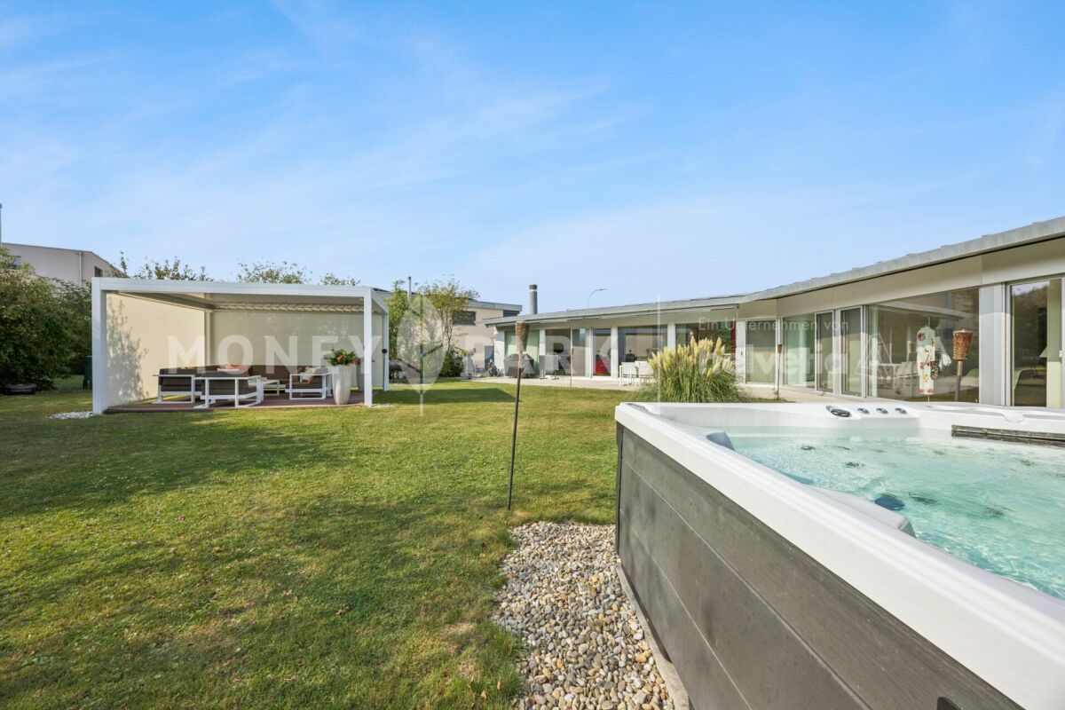 Dieses moderne Einfamilienhaus mit Weitsicht überzeugt mit einer exklusiven Lage, atemberaubender Aussicht und viel Platz für die ganze Familie. Es bietet auf drei Etagen und 2.5 Zimmern ein durchdachtes Wohnkonzept mit viel Platz, Privatsphäre und einer traumhaften Aussicht.Helle Räume, eine hochwertige Ausstattung, eine offene Wohnküche, ein grosszügiger Garten sowie eine Master-Suite mit Terrasse schaffen ein exklusives Wohnerlebnis. Die Einliegerwohnung mit separatem Eingang bietet zusätzlichen Wohnraum mit Wohnzimmer, Schlafzimmer, Bad und Wintergarten - ideal für Gäste, Familie oder zur Vermietung.Zum Haus gehört eine geräumige Doppelgarage mit Platz für zwei Fahrzeuge sowie zwei zusätzliche Aussenparkplätze. Ebenso wurden bereits Vorkehrungen getroffen, um eine Solaranlage bis hin zum Anschluss der Garage zu installieren, wodurch langfristig eine nachhaltige Energieversorgung gewährleistet werden kann. Diese umweltfreundliche Lösung trägt zur Reduzierung der Energiekosten bei und fördert eine ressourcenschonende Lebensweise.Ergänzend dazu sorgen elektronische Storen für zusätzlichen Wohnkomfort und ermöglichen eine individuelle Licht- und Sichtregulierung. Damit können Sie das Raumklima nach Ihren persönlichen Bedürfnissen gestalten und von maximaler Flexibilität profitieren.Ein Zuhause, das Komfort, Ruhe und modernes Wohnen perfekt vereint und Platz für individuelle Wohnbedürfnisse auf höchstem Niveau bietet! Raumaufteilung Erdgeschoss:Beim Betreten des Erdgeschosses werden Sie von einer einladenden Atmosphäre empfangen. Gleich links befindet sich eine praktische Garderobe mit ausreichend Stauraum für Jacken und Schuhe etc. Weiter entlang befinden sich auf beiden Seiten zwei helle und geräumige Kinderzimmer, ein Gäste-WC und ein modernes Badezimmer mit Badewanne, das höchsten Komfort bietet und zum Entspannen einlädt. Das Herzstück dieser Etage ist der weitläufige Wohn- und Essbereich, der durch grosse Fensterfronten mit Tageslicht durchflutet wird und eine warme, einladende Atmosphäre schafft. Die offene Küche, die mit modernsten Standards ausgestattet ist, vereint Design, Funktionalität und Geselligkeit auf perfekte Weise. Hochwertige Geräte, stilvolle Oberflächen und eine durchdachte Raumgestaltung sorgen nicht nur für ein exklusives Kocherlebnis, sondern auch für eine harmonische Integration in den Wohnbereich. Vom Wohnbereich aus gelangen Sie direkt in den liebevoll angelegten Garten, der mit einem gemütlichen Sitzplatz zum Entspannen einlädt. Eine praktische Markise sorgt für angenehmen Schatten an sonnigen Tagen und verlängert die Gartensaison bis in den Herbst hinein. Zudem sind bereits Vorbereitungen für die Installation einer Solaranlage getroffen, die eine nachhaltige Energieversorgung ermöglichen wird. Diese Etage vereint modernes Wohnen mit Komfort, Funktionalität und einer Atmosphäre, in der Sie sich sofort zuhause fühlen!1. Obergeschoss:Das 1. Obergeschoss dieses exklusiven Hauses bietet eine private Wohlfühloase mit atemberaubendem Ausblick. Das grosszügige Hauptzimmer beeindruckt mit einer weitläufigen Fensterfront, die nicht nur für eine helle und freundliche Atmosphäre sorgt, sondern auch direkten Zugang zur grosszügigen Terrasse ermöglicht. Von hier aus geniessen Sie einen traumhaften Panoramablick über die idyllische Landschaft - der perfekte Ort, um den Tag entspannt ausklingen zu lassen oder die ersten Sonnenstrahlen am Morgen zu begrüssen.Ein weiteres Highlight dieser Etage ist die angrenzende Ankleide, die reichlich Platz für eine stilvolle Garderobe bietet und das Raumkonzept elegant abrundet. Der luxuriöse Komfort wird durch das moderne Bad en Suite ergänzt, das mit hochwertigen Materialien und einer durchdachten Gestaltung für pure Entspannung sorgt.Diese Etage steht für Exklusivität, Ruhe und Privatsphäre - ein Rückzugsort, der höchsten Wohnansprüchen gerecht wird. Untergeschoss:Im Untergeschoss befinden sich der Technikraum, eine großzügige Waschküche sowie ein Kellerabteil, das zusätzlichen Stauraum bietet. Darüber hinaus wurde eine Wasserenthärtungsanlage installiert, die die Wasserqualität verbessert. Ein separater Durchgang führt zudem zur Einliegerwohnung, die jedoch nur mit einem eigenen Schlüssel zugänglich ist. Flexible Einliegerwohnung - Wohnen, Vermieten oder Arbeiten unter einem DachDie unterhalb des Erdgeschosses gelegene Einliegerwohnung bietet höchsten Wohnkomfort und maximale Unabhängigkeit dank eines separaten Eingangs. Diese stilvolle Wohneinheit eignet sich ideal für Gäste, erwachsene Kinder, eine Pflegekraft oder als attraktive Möglichkeit zur Vermietung und Kapitalanlage.Mit ihrem grosszügigen Grundriss und der durchdachten Raumaufteilung eröffnet sie vielseitige Nutzungsmöglichkeiten - von der privaten Erweiterung des eigenen Wohnraums bis hin zur lukrativen Dauer- oder Ferienvermietung. Eine solche zusätzliche Wohneinheit steigert nicht nur die Flexibilität im Alltag, sondern auch den Wert der gesamten Immobilie nachhaltig.Das helle Wohnzimmer bildet das Herzstück der Wohnung und schafft eine einladende Atmosphäre. Ergänzt wird das Raumkonzept durch ein Schlafzimmer, ein modernes Badezimmer sowie ein praktisches Reduit, das zusätzlichen Stauraum bietet. Dank der vorbereiteten Anschlüsse für eine Küche lässt sich die Wohnung flexibel an individuelle Bedürfnisse oder an die Anforderungen einer Vermietung anpassen.Ein besonderes Highlight ist der Wintergarten, der den Wohnraum auf elegante Weise erweitert und zu jeder Jahreszeit einen geschützten Platz zum Entspannen bietet - ein weiterer Pluspunkt für zukünftige Mieter oder Bewohner.So überzeugt diese Einliegerwohnung nicht nur als komfortabler Rückzugsort, sondern auch als zukunftssichere Investition mit Wertsteigerungspotenzial.