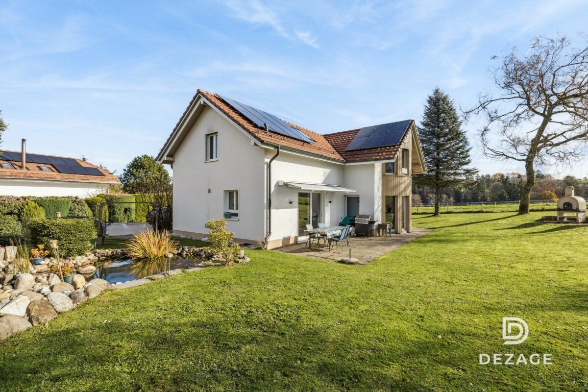 À Montpreveyres, havre de lumière et de tranquillité, cette villa de 8.5 pièces et 240 m², exposée plein sud, offre un cadre de vie idyllique. Grand jardin avec terrasses, étang, cascade et four à pizza. Séjour lumineux avec poêle en pierre ollaire et suite parentale avec dressing. Deux salles d’eau, carnotzet, abri PC, garage et places extérieures. Équipée de panneaux photovoltaïques et d’une pompe à chaleur, elle allie confort moderne et performance énergétique. À proximité des écoles, commerces et transports, à 15 minutes de Lausanne.Cette offre de BETTERHOMES se caractérise par les avantages suivants: - lumière naturelle abondante orientation plein sud- environnement calme et verdoyant- bel espace extérieur- vue dégagée sur la campagne- terrasses, un four à pizza, un étang avec cascade et poissons- soigneusement entretenue- 33 panneaux photovoltaïques et d’une pompe à chaleur air/eau- une excellente isolation phonique et thermique- suite parentale avec dressing- Un carnotzet, un abri PC, un garage, des places extérieures- etc., etc., etc. ...Intéressé? Contactez-nous pour une visite gratuite!Rien qui correspond? Vous trouverez plus de 2'100 autres objets sur: www.betterhomes.ch - Le spécialiste suisse des transactions immobilières.Vous avez un bien immobilier à commercialiser?Profitez de notre savoir-faire: https://www.betterhomes.ch/fr/profiterVous souhaitez connaître la valeur de votre bien immobilier?Découvrez sa valeur dès maintenant grâce à notre estimation gratuite, immédiate et sans engagement!https://www.betterhomes.ch/fr/knowledge/estimationPlus détailsSituation: environnement calme et verdoyantEtat du bâtiment: soigneusement entretenueSalles de bain: 2 (1 x WC / douche, 1 x WC / baignoire double lavabo)Système de chauffage: pompe à chaleur air/eauTransport publics: bus, 300 mEcole: écoles primaires, 450 m Commerces: épicerie villageoise / tea-room, 450 m