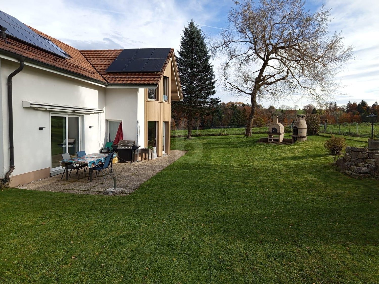 DOSSIER COMPLET SUR DEMANDEInfos en bref: • Superficie : 163 m² habitables - 290 m² utiles - 1006 m² de parcelle • Pièces : 8.5 pièces (4 chambres, 2 salles de bains) • Stationnement : 1 garage box + 1 couvert + 3 place extérieures • Orientation : Sud-Ouest, ensoleillement optimal • Environnement : En bordure de champ, à deux pas de la forêt du Jorat pour vos promenades • Accès au centre-ville : 15 min en voiture de Lausanne - 18 min en bus (métro Croisette) • Écologie & économies d'énergie : Faibles charges grâce à la pompe à chaleur et aux panneaux solaires • Espace extérieur : terrasse, grand jardin plat avec un magnifique dégagement. Biotope aquatique. ------------------------------------------------Villa individuelle familiale ? au calme, à 10 minutes de LausanneÀ Montpreveyres, cette villa individuelle bénéficie d'un environnement préservé en lisière de zone agricole, avec une vue dégagée sur les champs et la forêt. Lausanne est à seulement 10 minutes en voiture, la desserte par bus (correspondance M2) facilite les trajets, et l'accès à la Route de Berne est tout proche. On profite ici d'un calme absolu, sans nuisances, tout en restant connecté aux commodités.Clés en main, la maison a fait l'objet d'un entretien suivi et d'améliorations régulières (dernières en 2023) : vous posez vos valises, rien à prévoir. Les volumes sont généreux (env. 163 m² habitables / 290 m² utiles) et la circulation est fluide ; la pièce de vie, lumineuse et ouverte sur le jardin, crée un espace convivial pour les moments en famille.------------------------------------------------Vous apprécierez particulièrement : • Son aspect "clés en main". • Son dégagement sur les champs et la forêt. • Sa grande pièce de vie ouverte sur l'extérieur. • Sa belle luminosité grâce à son orientation au Sud-Ouest. • La proximité des transports en commun • La proximité de la forêt du Jorat • Ses faibles charges et son efficacité énergétique • Le haut de Lausanne à moins de 10 minutes