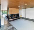 • large glass wall, hardwood floor, modern open space, large sliding glass door