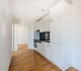• wooden floor, glass doors to balcony, white walls, white radiator